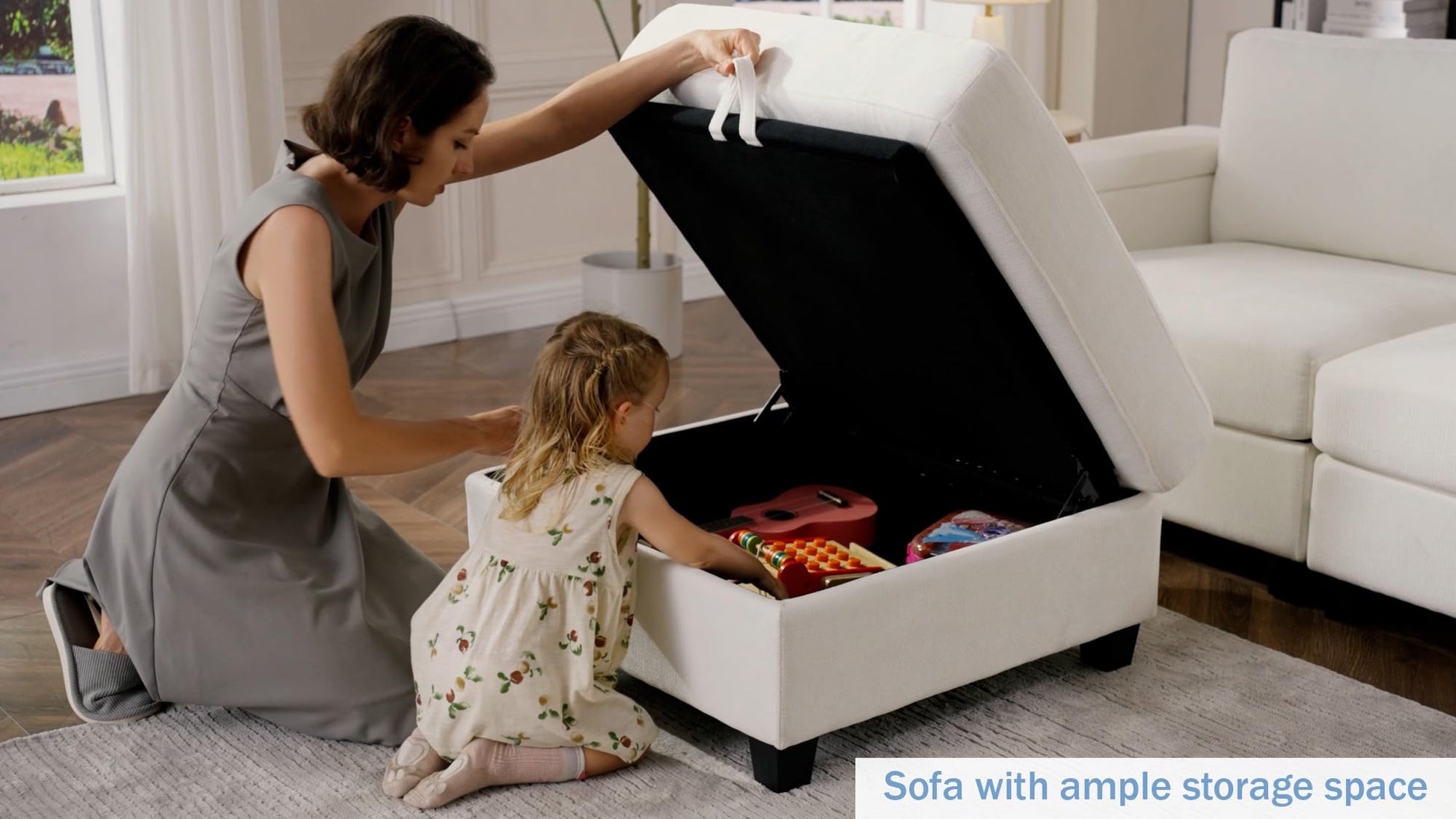 - STORAGE SOFA: Under each sofa seat was set up a storage space with size of 30×25×7inches / 77*64*18.5cm, which provides you ample storage space for your family's belongings like blanket, books, games console, or toys of your kids or your pet. This storage feature provides extra storage space for your compact living area, helping you maximize your living space and maintain a neat, clean home.