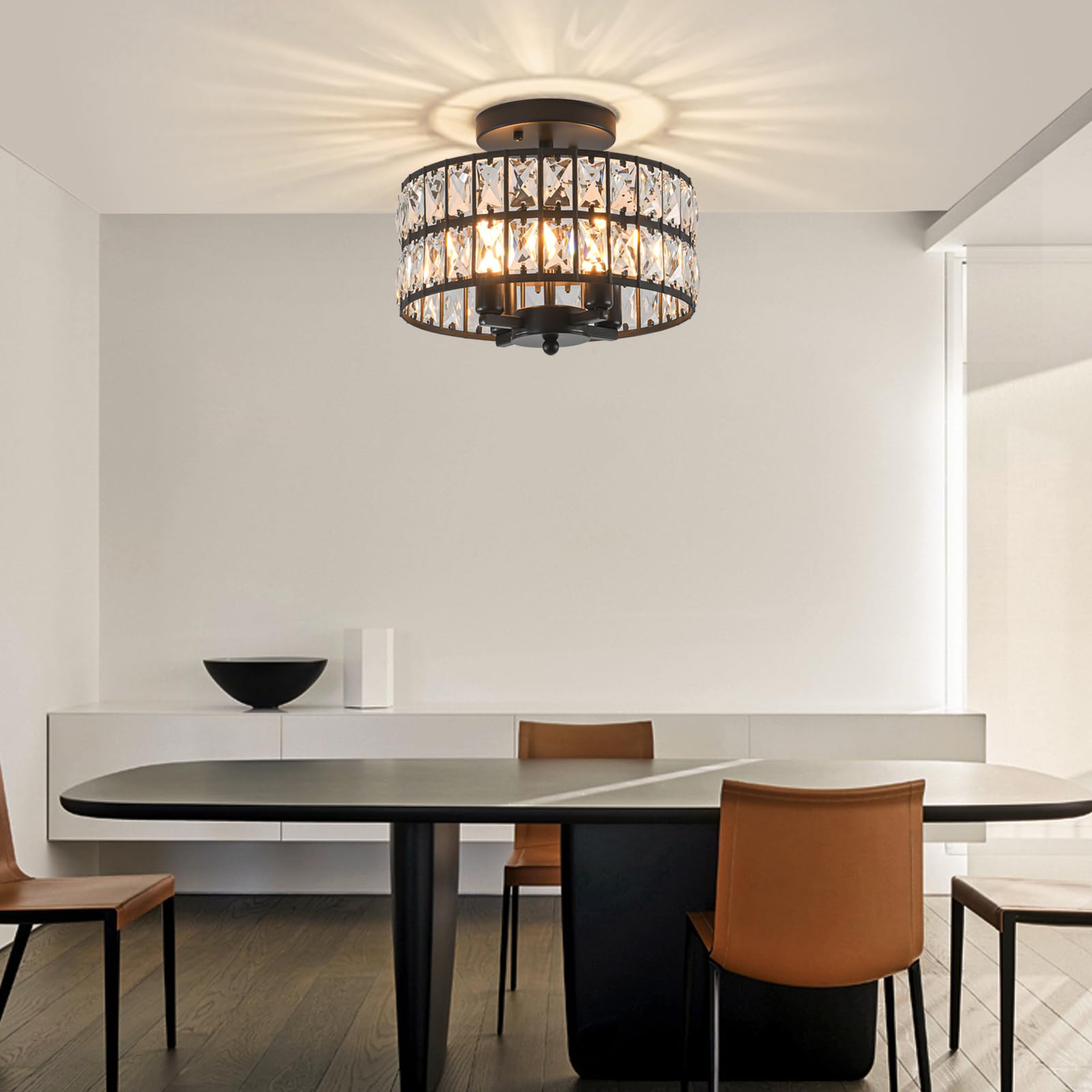 - Timeless Elegance: The combination of black finish and sparkling crystal makes this ceiling light a stunning focal point, perfect for living rooms, dining rooms, bedrooms, or entryways.