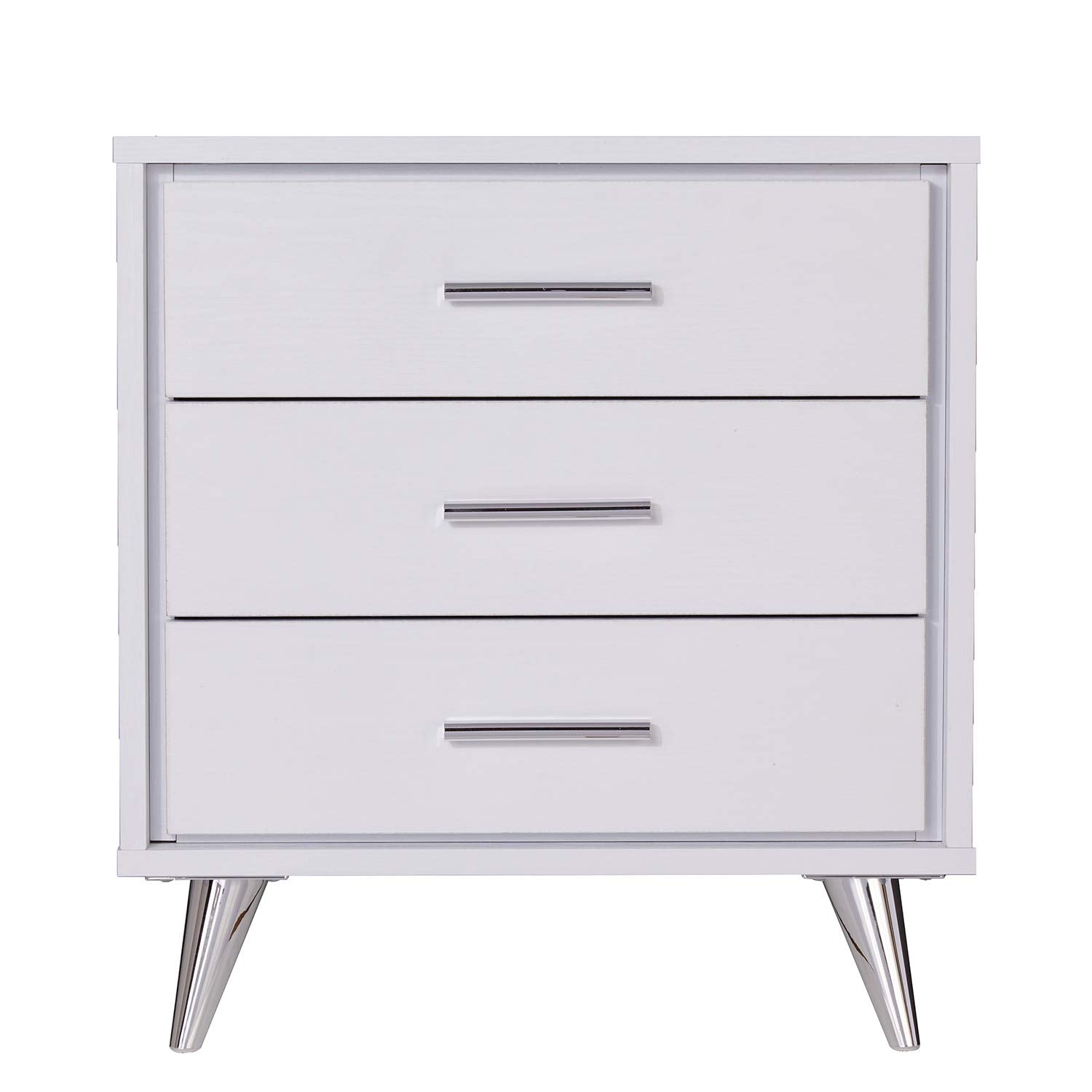 - Storage nightstand or accent table; 3 drawers; Sleek, two-tone finish.Assembly Required.Material:Wood.Item Dimensions:17" L x 19.7" W x 21.5" H