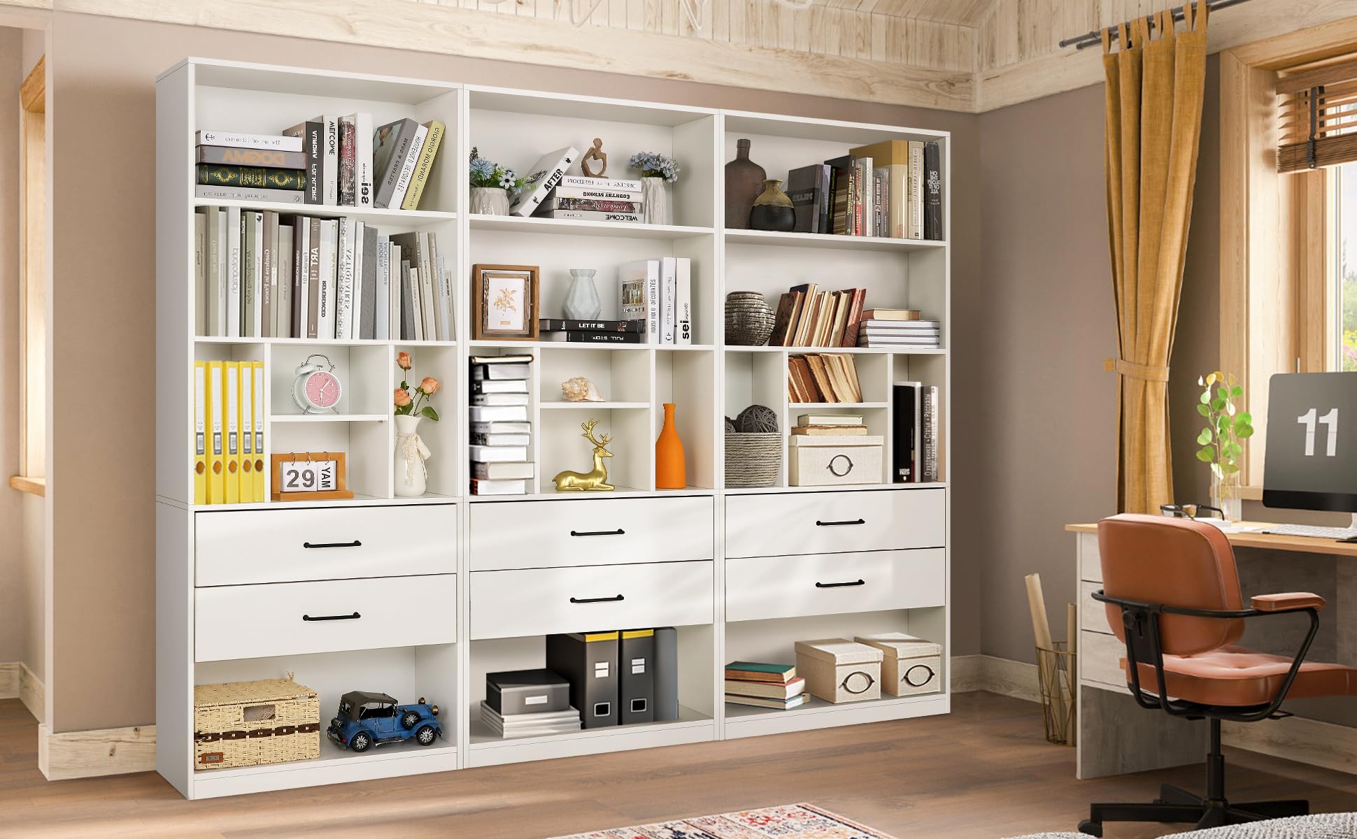 - With back panel can prevents items from falling off and enhances the stability of bookcase . The bookcase with drawers also can be attached to the wall with anti-toppling device to prevent wobbling or tipping over.