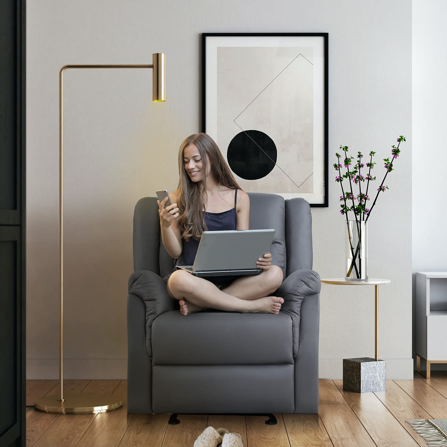 Sereno Glider Recliner Chair – Suede Fabric, Push-Button Recline