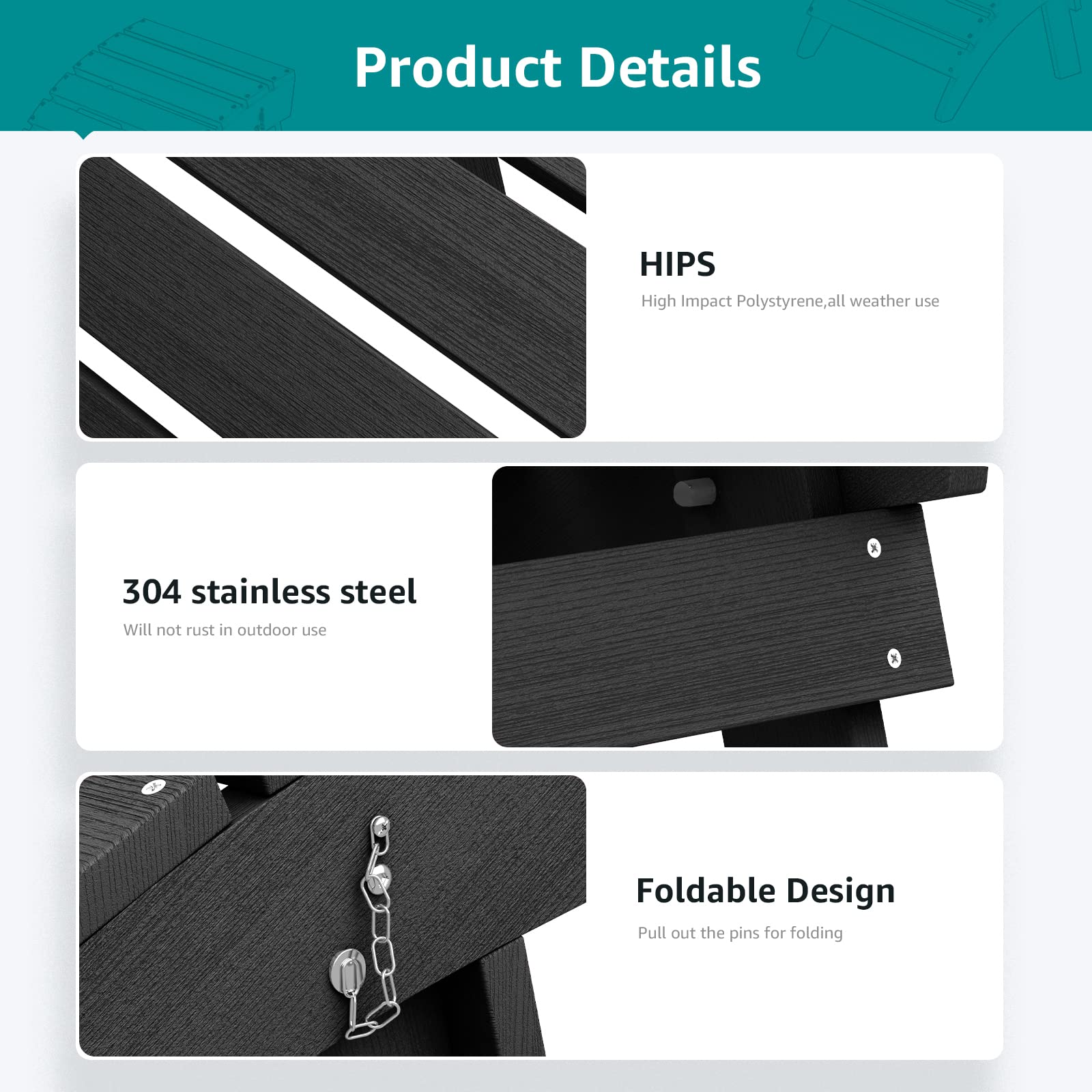 - FOLDING ADIRONDACK FOOTREST — 2023 new upgrades Folding Adirondack Footrest, both sides of the legs have increased the pins to improve stability, no longer shaky. Note: please pull out the pin when fold it.