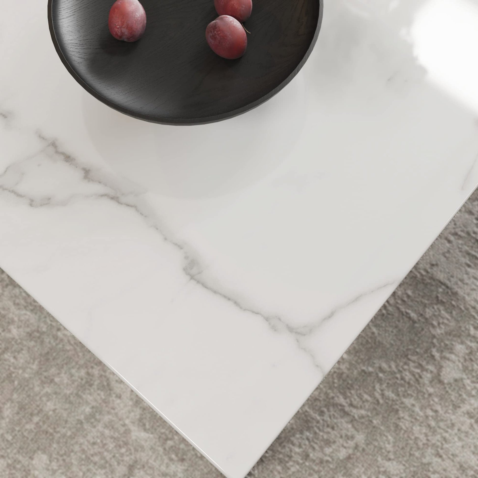- Elegant and modern style Faux marble surface and straight lines with bright and shiny appearance. This five-piece dining table set adds modernity and elegance, perfect for any decorating style in your home.