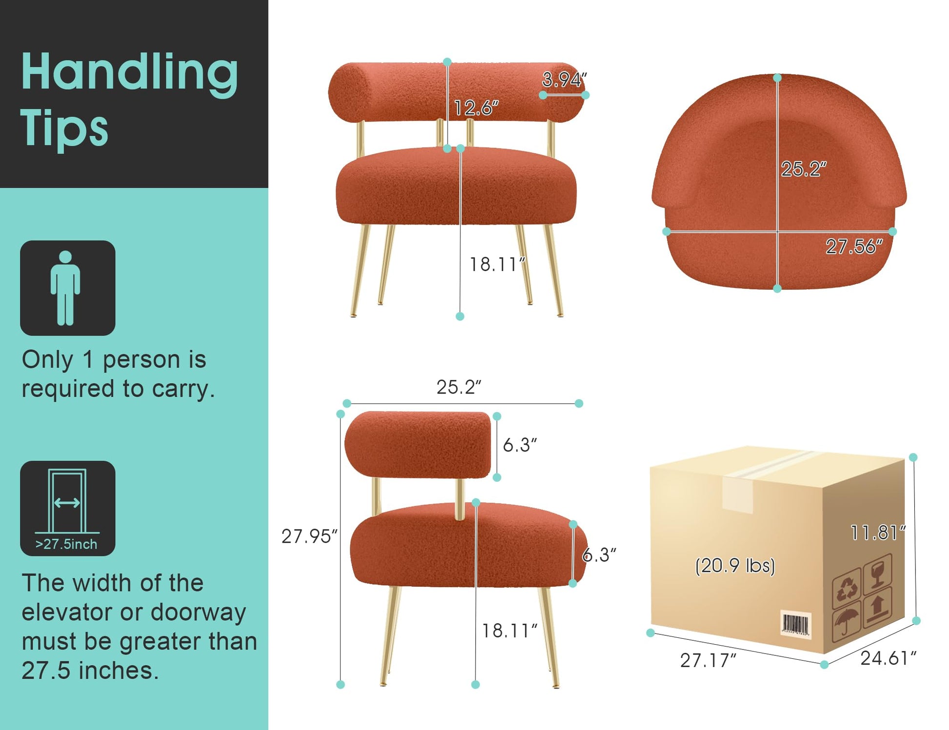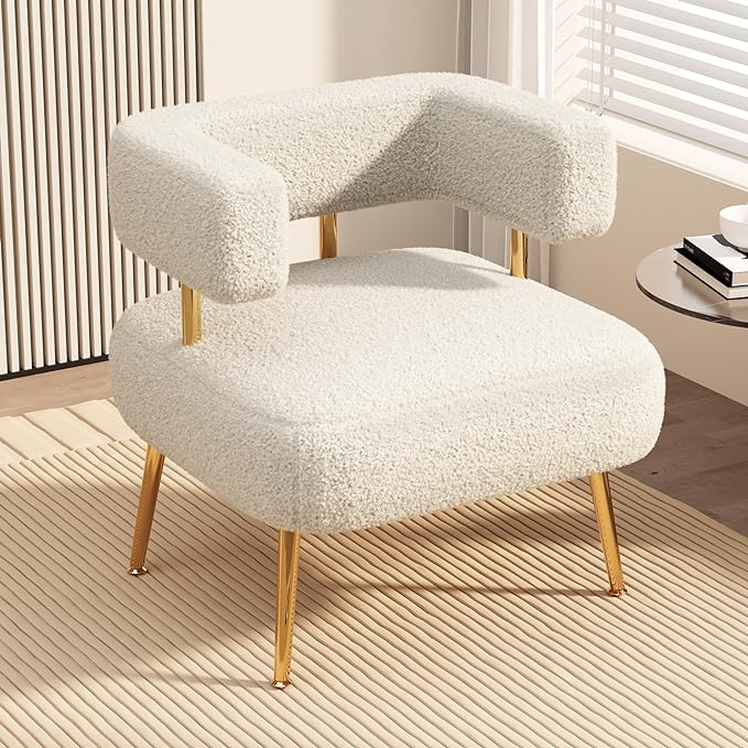 - Comfortable Teddy Fabric: The casual fluffy tub hand chair with an open back is designed with soft sherpa material and a thick cushion, which is scratch-resistant and skin-friendly. The U-shaped backrest is super comfy like a hug and the armrest is at the perfect height giving your shoulders and arms support. The backrest and cushion are filled with high-density and high-resilience foam, which brings you a comfy seating experience.