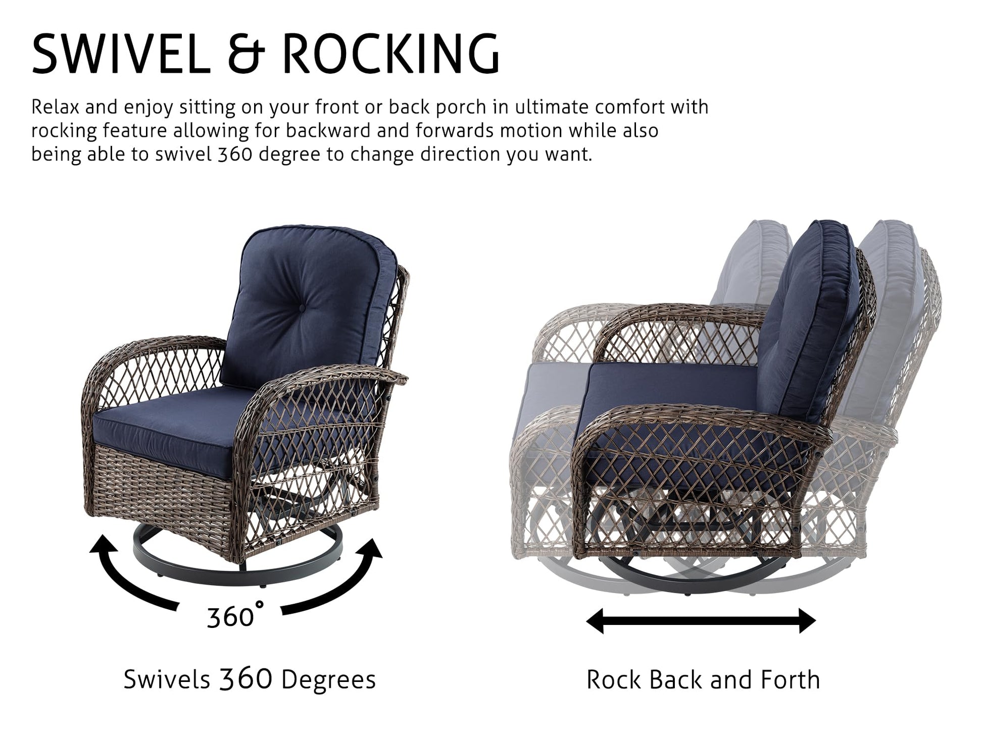 - ROCKING & 360 DEGREE SWIVEL - Full rotation patio chairs allow you to face or leave the sun easily. The unique design of swinging back and forth allows you to enjoy ultimate relaxation.