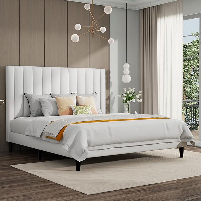 - VELVET BED JUST FOR YOU : Upholstered in plush velvet, our luxurious bed is the best choice for your classy life,complete with upholstered side rails and a padded queen headboard,finally you can have style and comfy at the very same time.