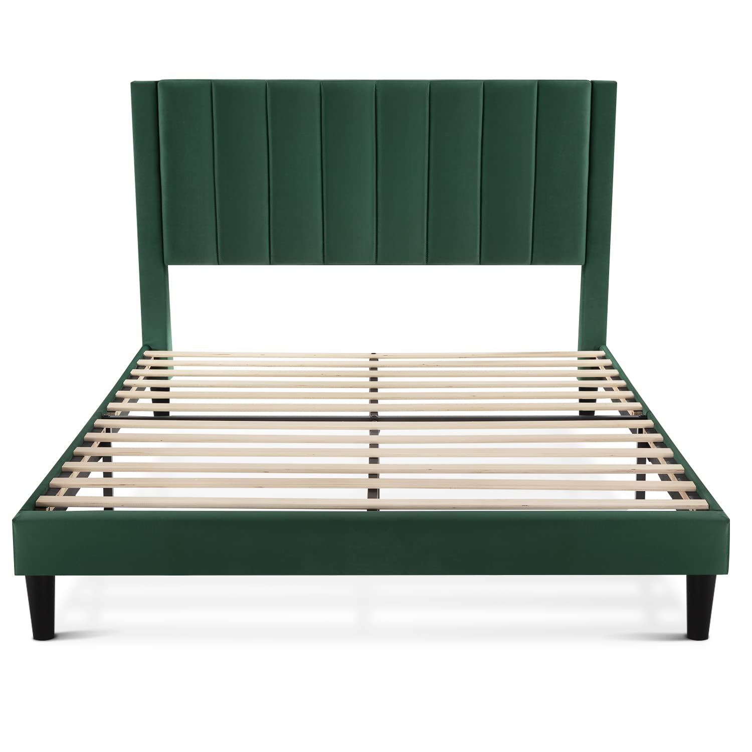 - VELVET BED JUST FOR YOU: Upholstered in plush velvet, our luxurious bed is the best choice for your classy life, complete with upholstered side rails and a padded queen headboard, finally you can have style and comfy at the very same time.