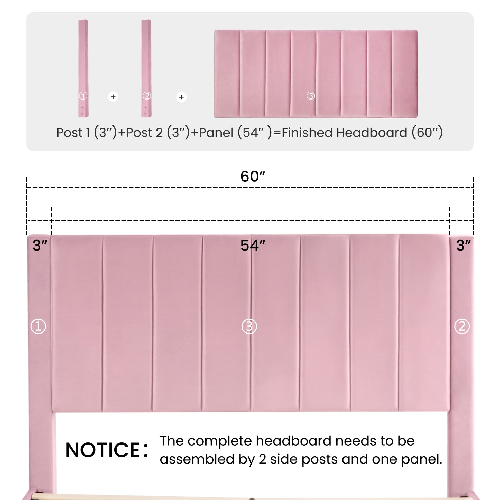 - NOTICE: The color of the velvet fabric will change according to the intensity of the light, and the bed frame will have a great color difference under different lights.