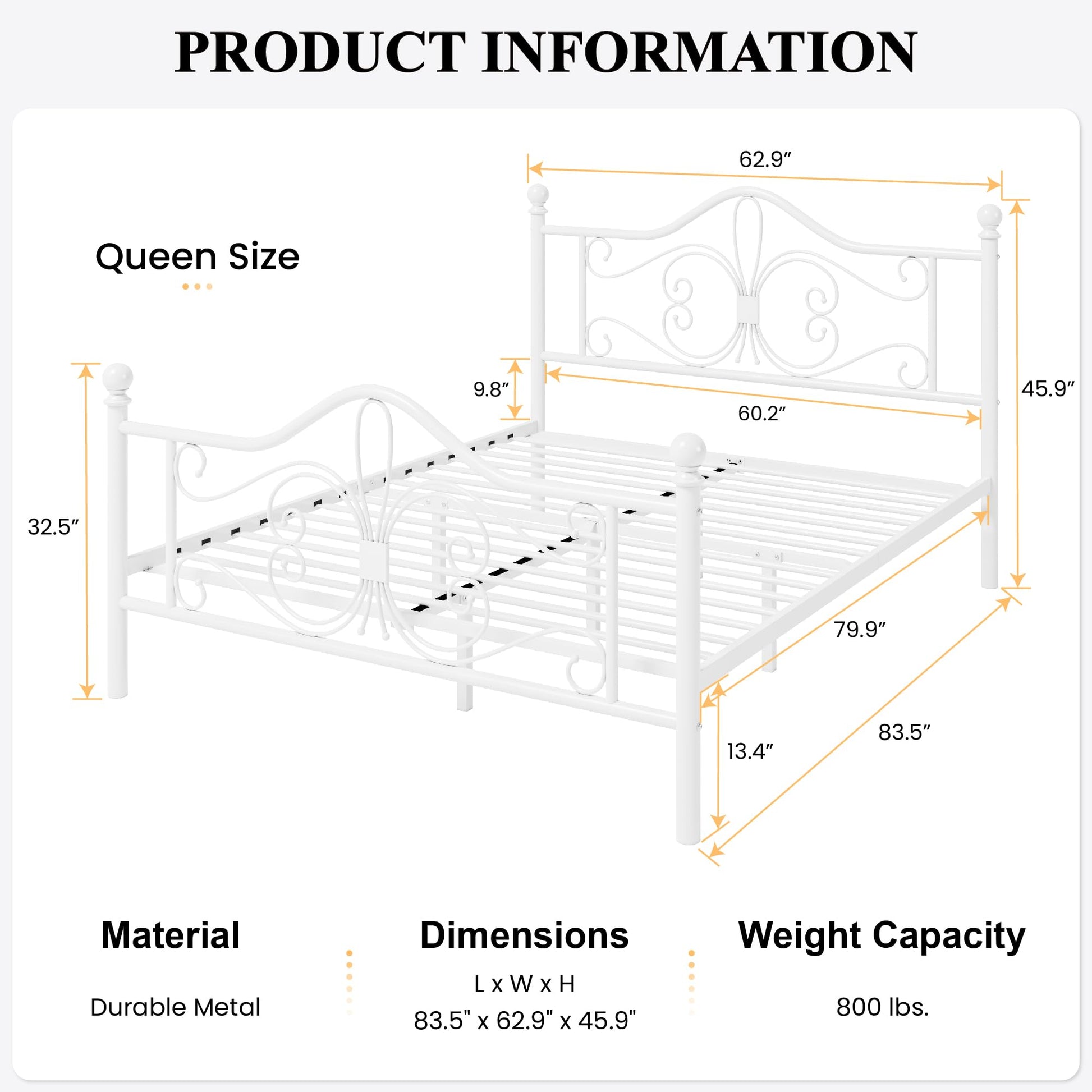Queen Size Bed Frame , Metal Bed Frame with Butterfly Pattern Design