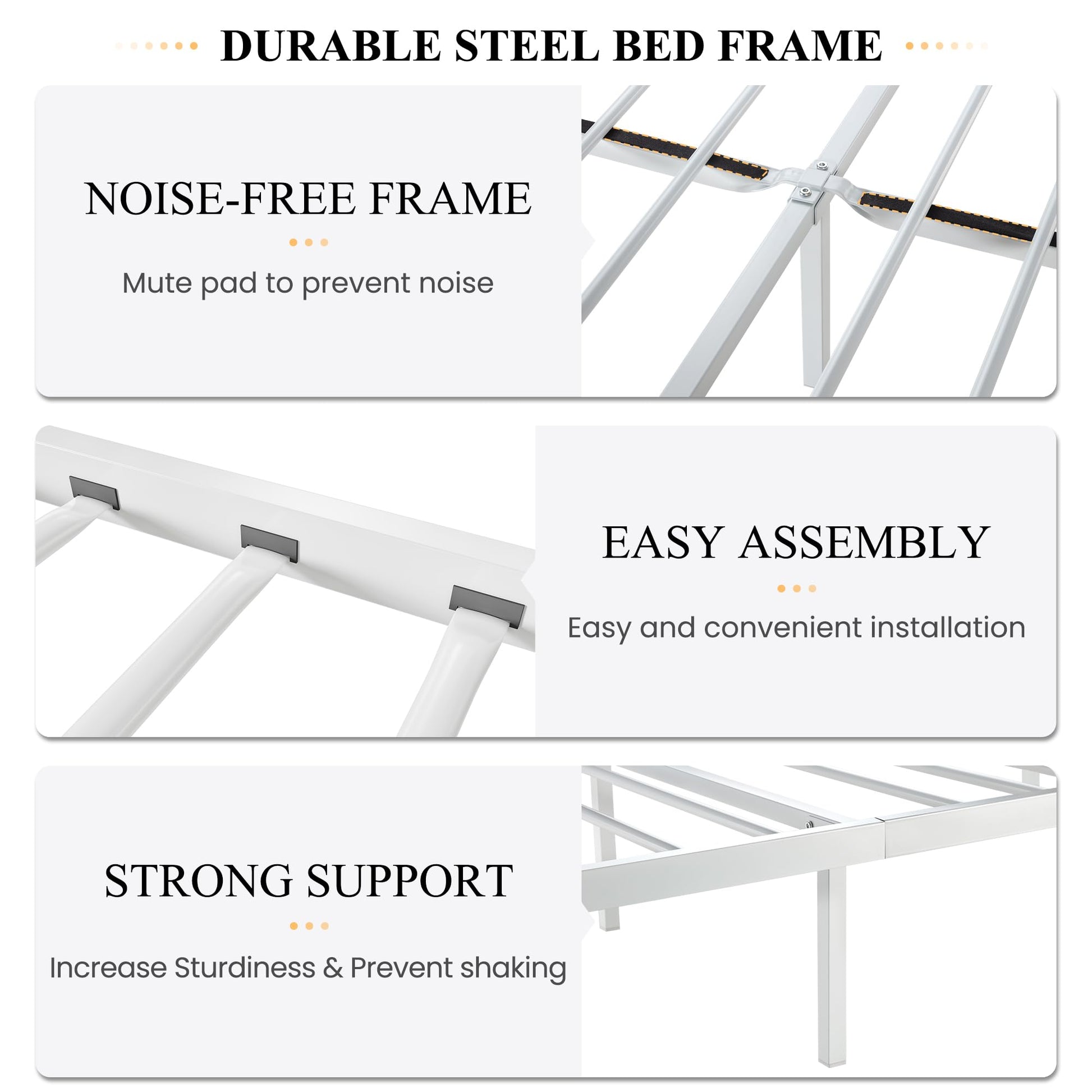 - Heavy-Duty Metal Platform Bed Frame: Made from premium-quality steel, this sturdy metal platform bed frame in a double size eliminates the need for a box spring. Simply place your mattress directly on top for a worry-free and comfortable sleep.