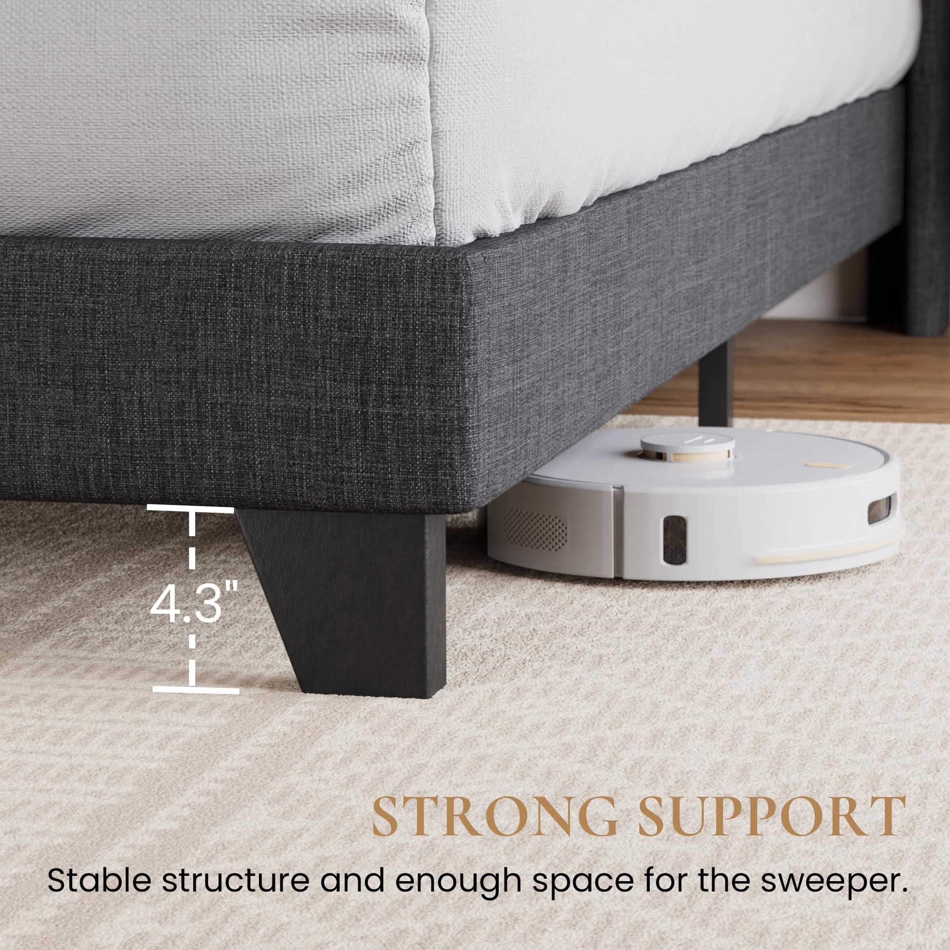 - Practical Design: Utilize the 3" thick headboard to conveniently place your essentials, the 4.3" clearance provides ample space underneath for the sweeper.