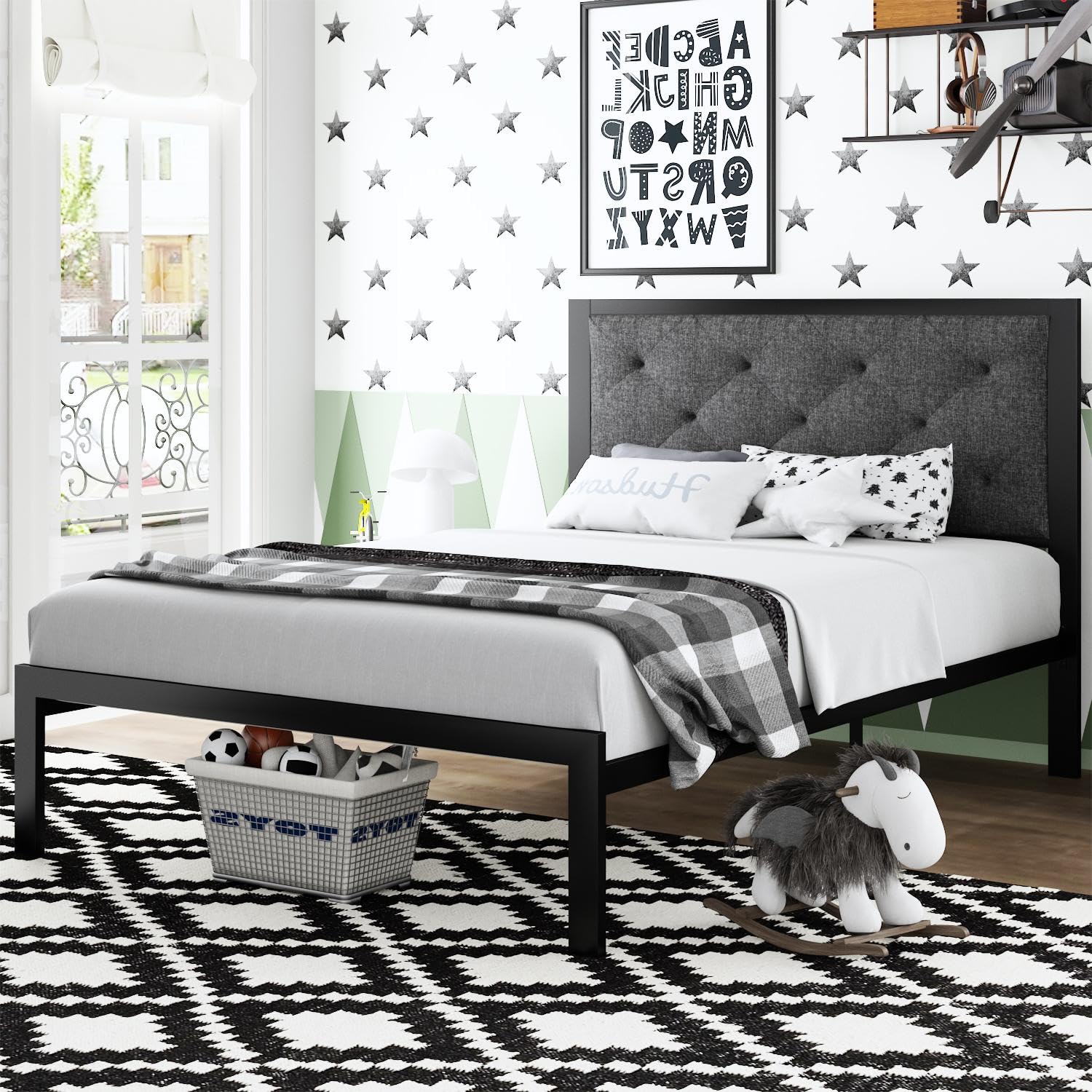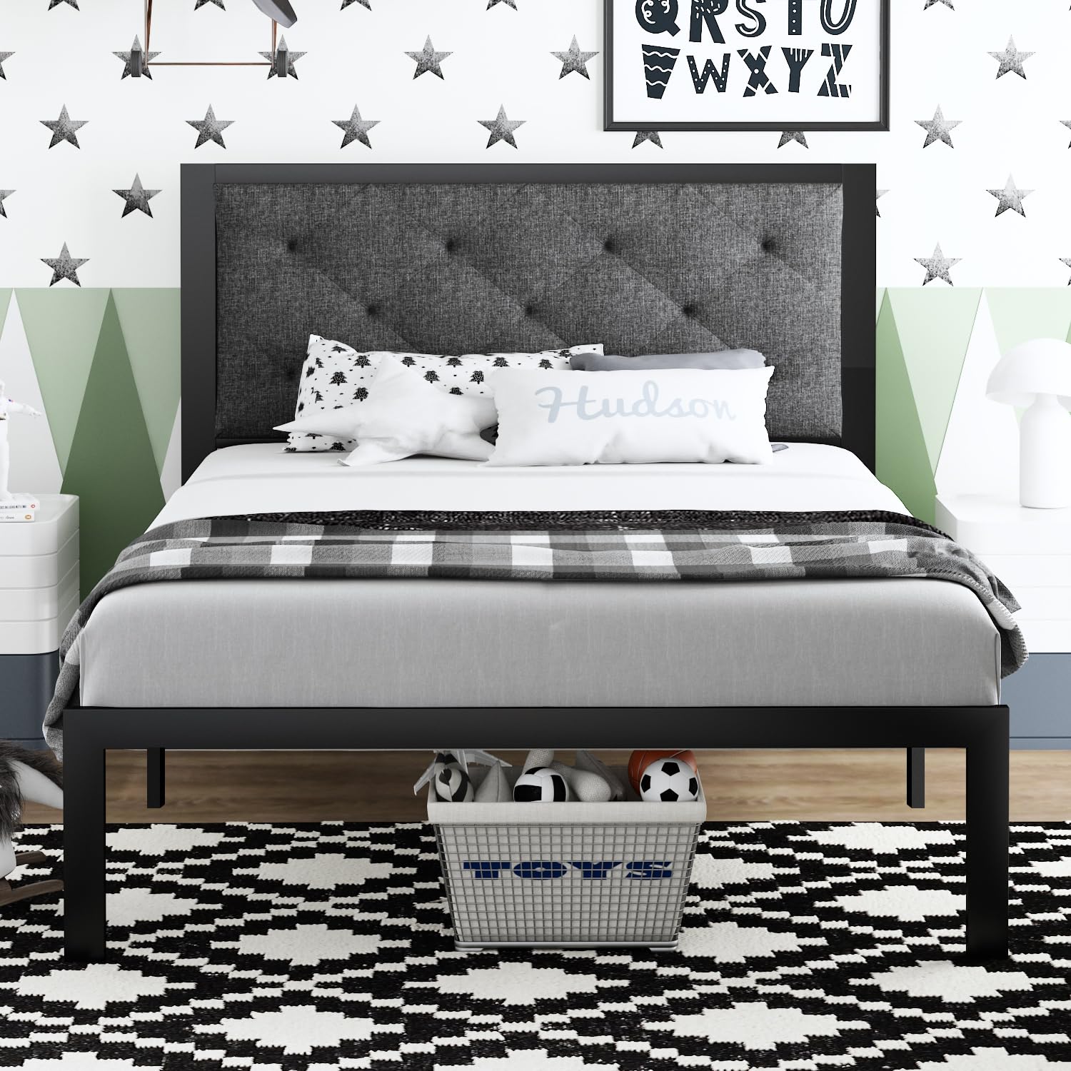 Twin Size Metal Platform Bed Frame,Fabric Upholstered Button Tufted Headboard
