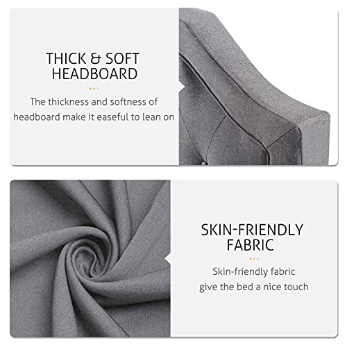 Upholstered Full Size Bed Frame, Platform Bed with Curved Rhombic Button