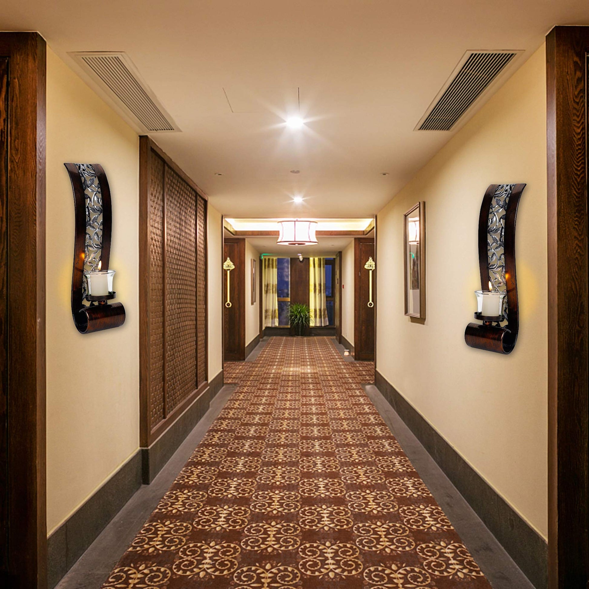 - Antique Wall Candle Sconce: Add an eye-catching look to any space with this fabulous pair of wall sconce candle holders. Each sconce features an openwork silhouette and cylindrical glass shade, which could allow you to place pillar candle or flameless LED light to increase brightness(CANDLE NOT INCLUDED). Size: 14.4 x 3.5 x 3.5 inches. Candle Compatibility: 1.6" W Pillar.