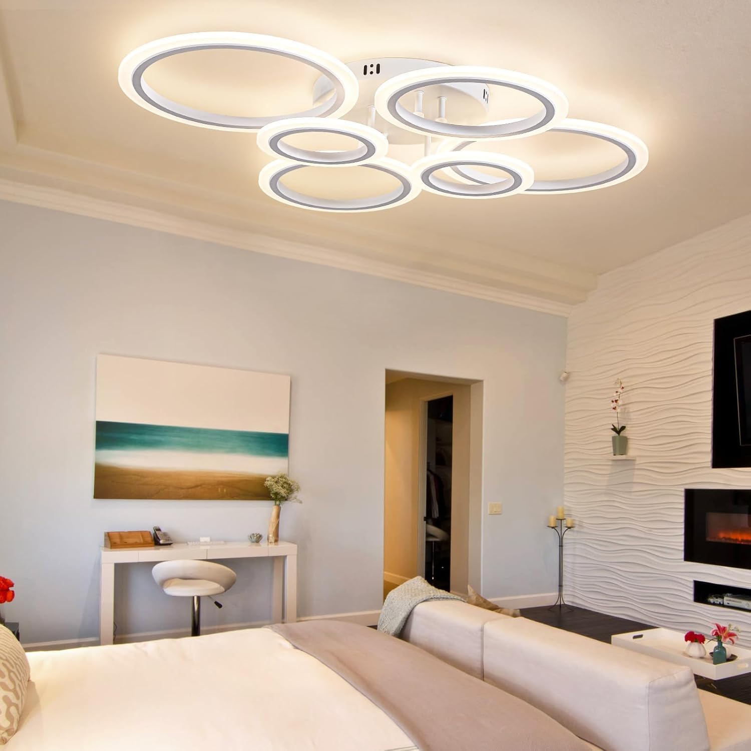 - Dimmable Ceiling Light: Modern ring chandelier with stepless 5%-100% brightness, 3000-6000K color temperatures dimmable, memory function will remember last light settings