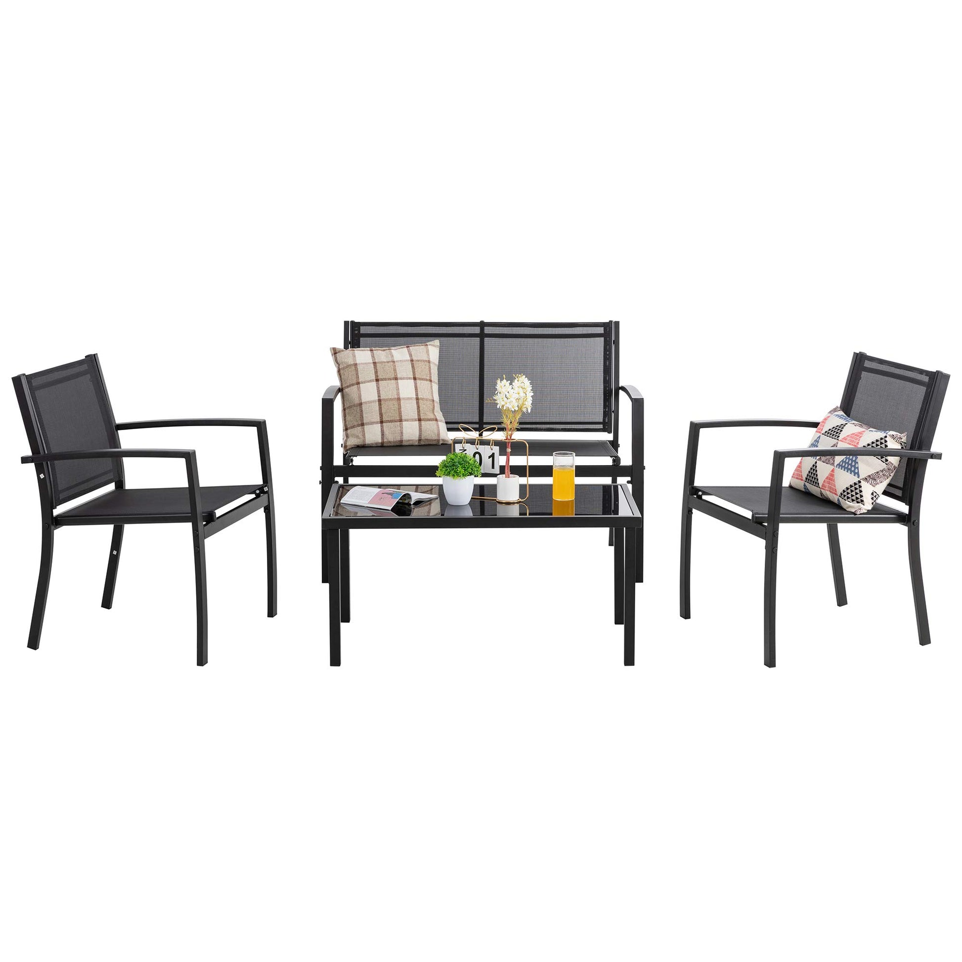 4 Pieces Patio Furniture Set All Weather Textile Fabric Outdoor Conversation Set