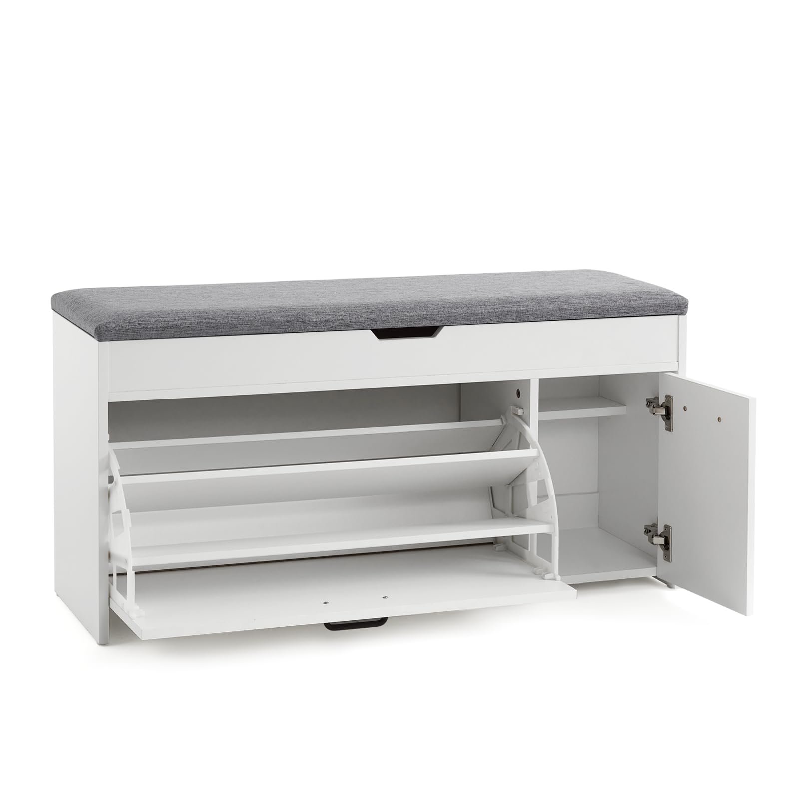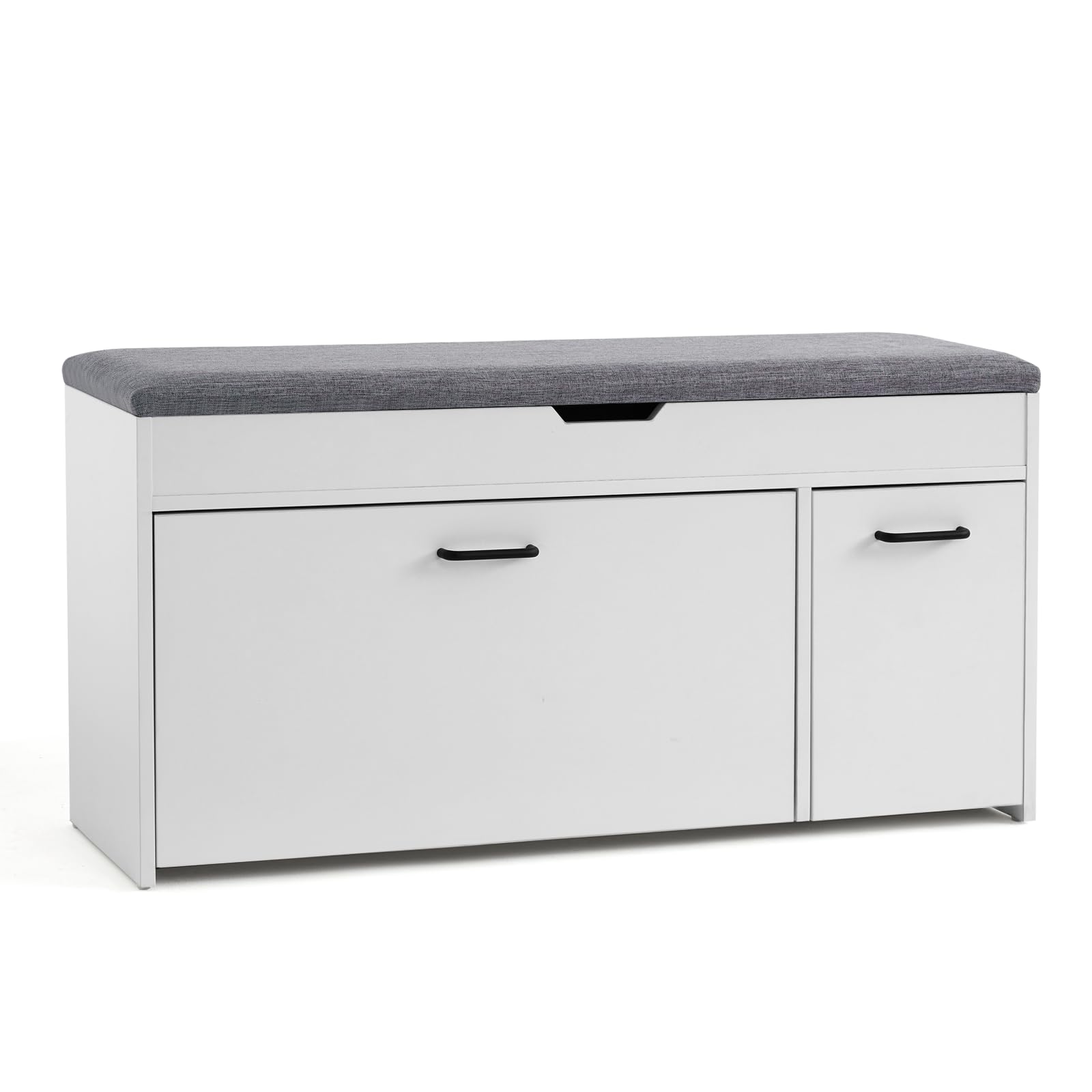 - [ Large Space with Hidden Storage Space ] - The product is designed with a flip-up cushion on top, revealing hidden storage space when opened. The partition in the cabinet on both sides is adjustable and you can store 9-12 pairs of shoes according to different needs with an outer size less than 11.8 inch.
