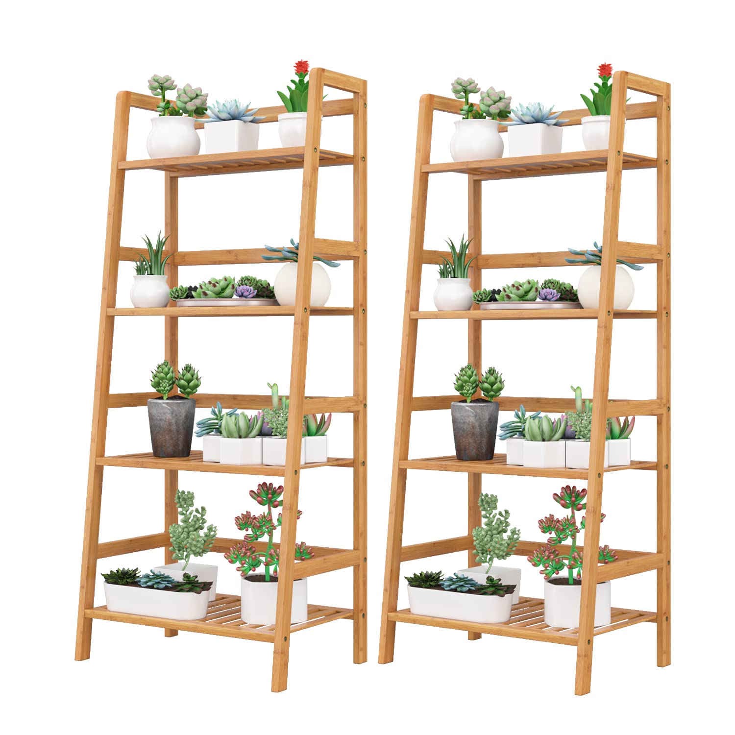 - 4-Tier Bamboo Bookshelf: The material of the bookcase is 100% natural bamboo, friendly, durable, and of high quality. If you are a fan of rural style, now this bamboo ladder shelf is absolutely for you.