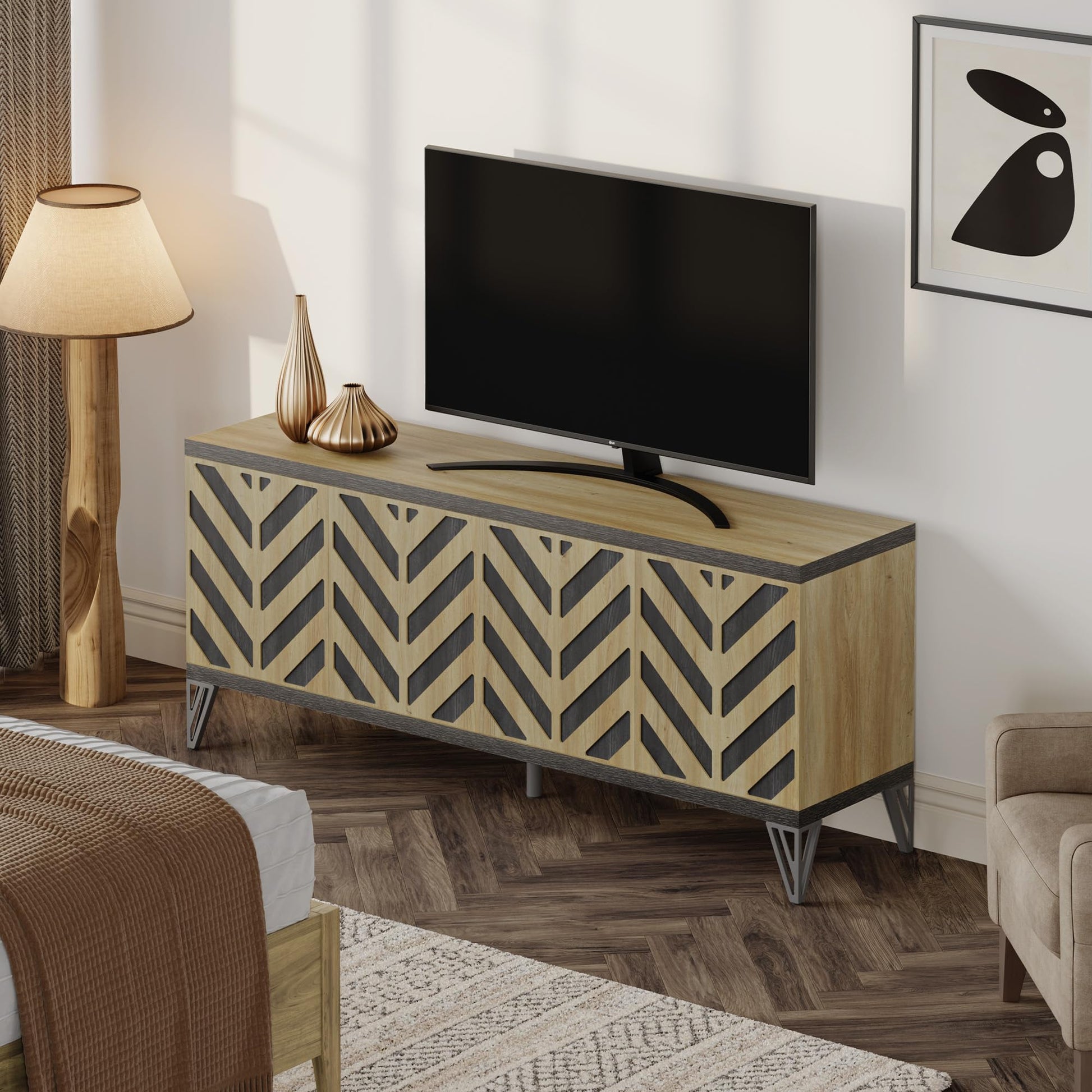 Large TV Stand for Living Room - TV Console Entertainment Center with Herringbone Pop