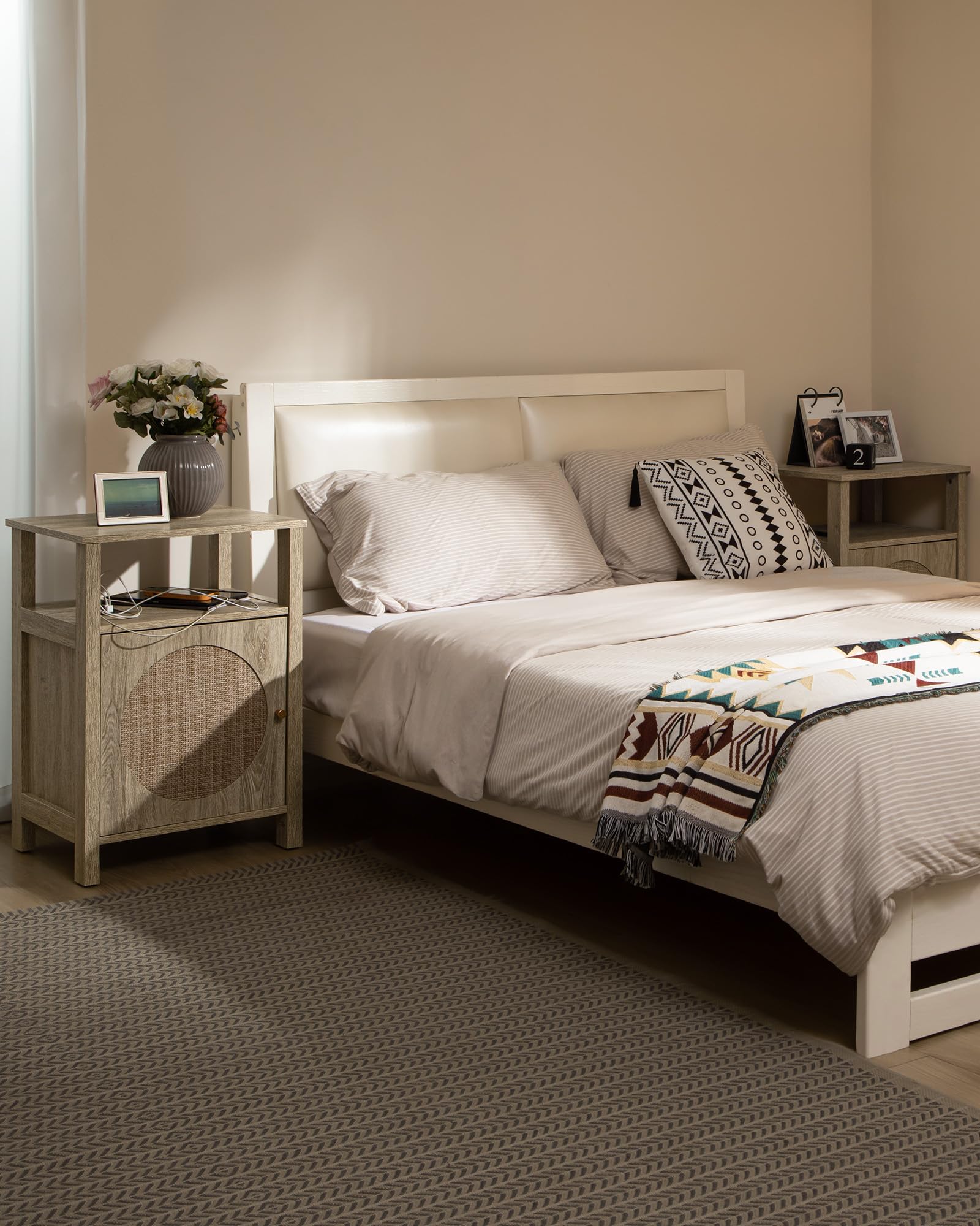 Rattan Nightstand Set of 2, Boho Tall Night Stand