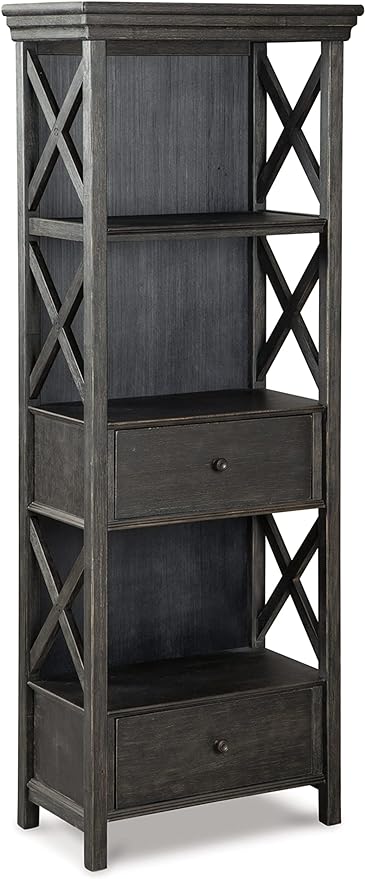 - BEAUTIFULLY CRAFTED: Made of veneers, wood, and engineered wood in a textured antique white finish. Designed with 3 shelves and 2 drawers