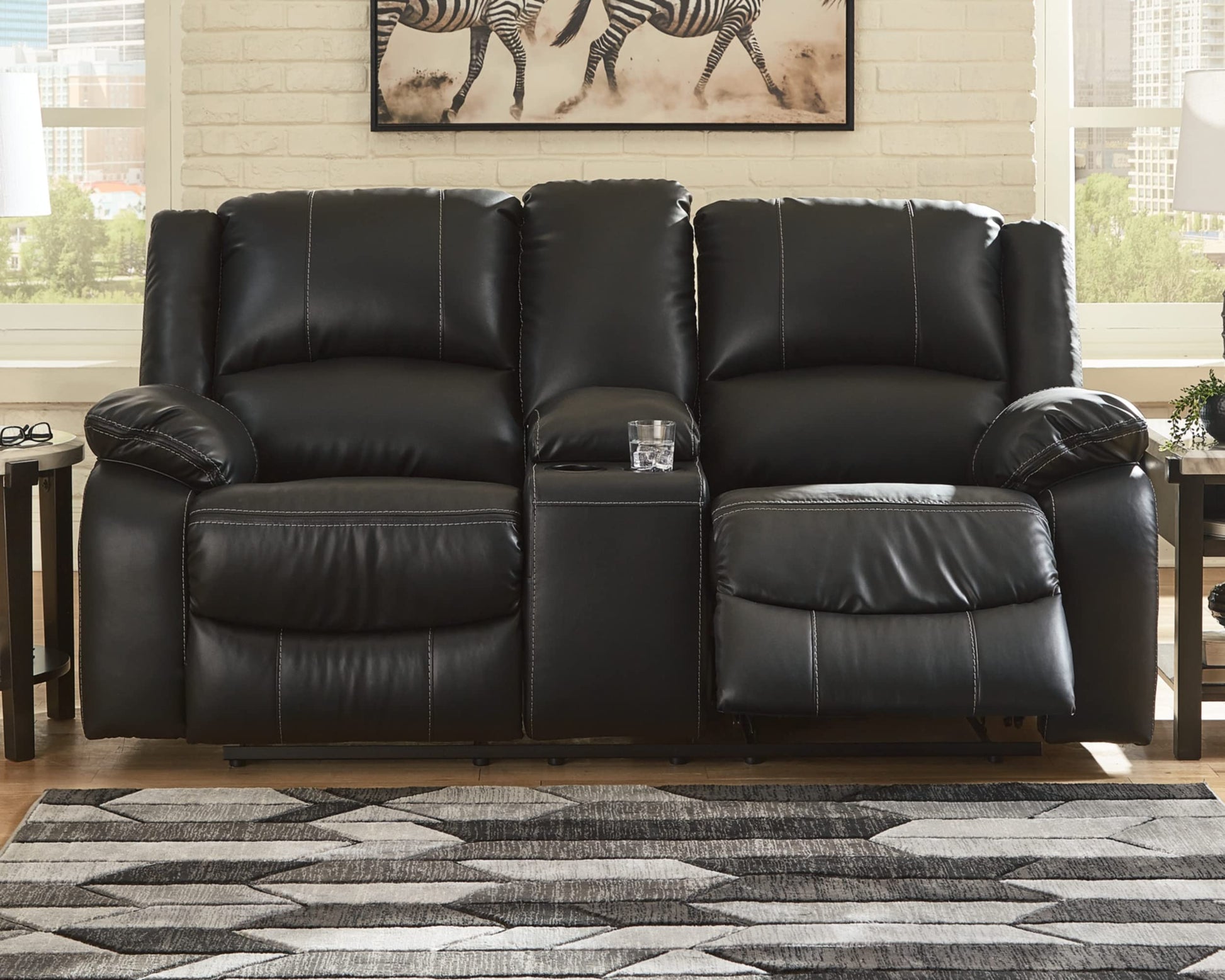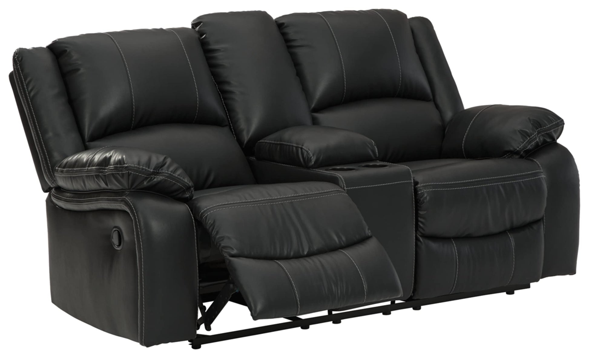 Calderwell Faux Leather Manual Double Reclining Loveseat with Storage Console, Black