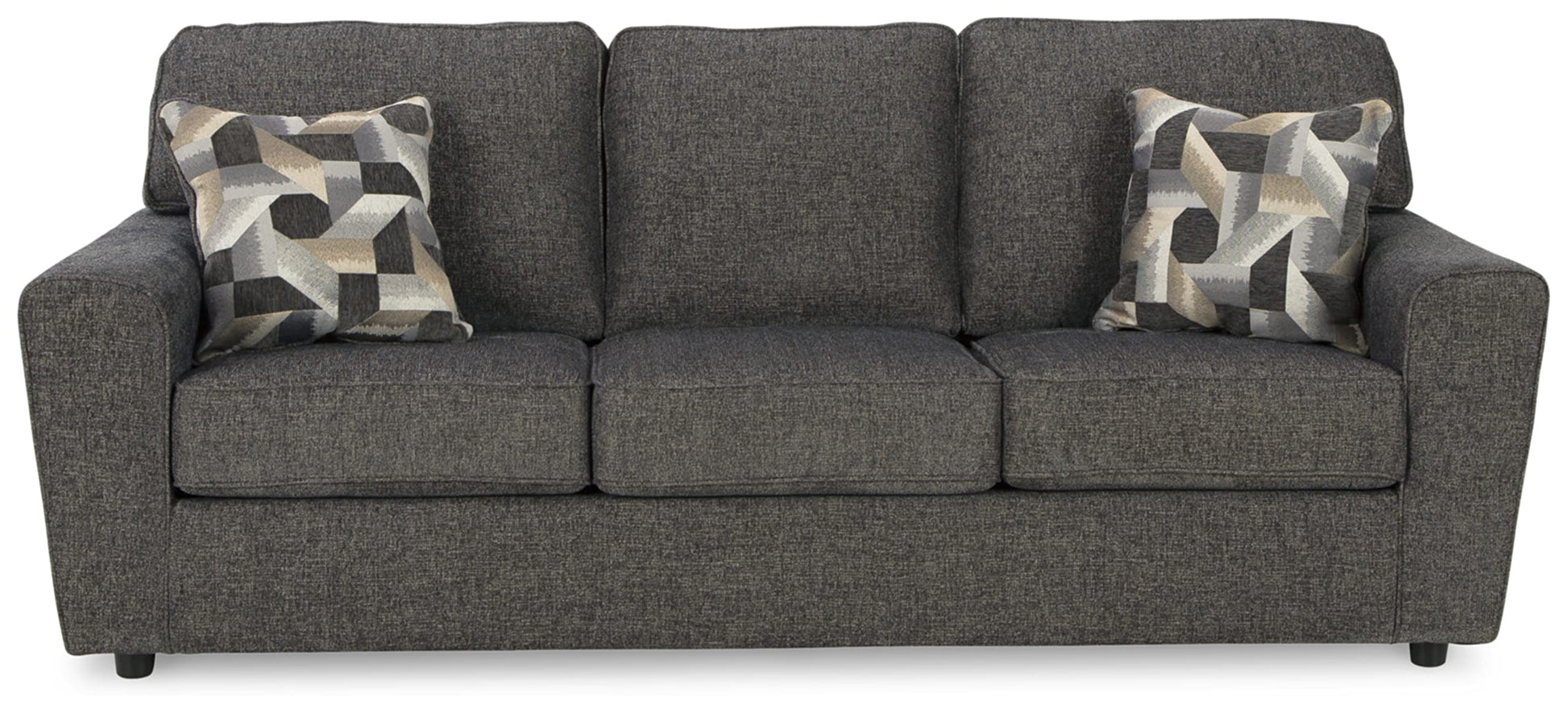 - CUSHIONED COMFORT: Corner-blocked frame. Polyester upholstery covers the attached back and loose seat cushions. Includes accent pillows
