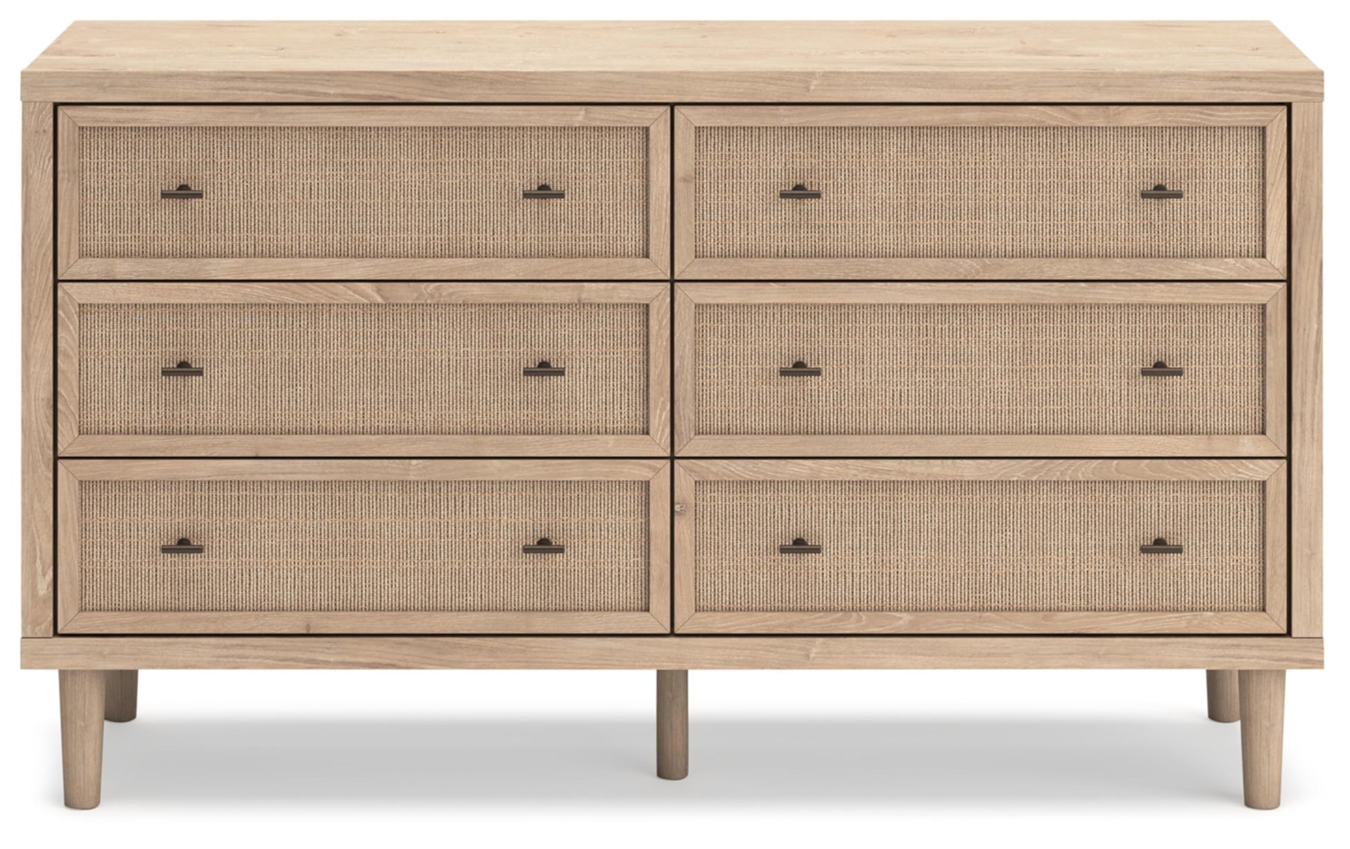 - 6-DRAWER DRESSER: This dresser is a fresh style awakening. Pairing a light finish with replicated oak grain & textured cane details, its mixed materials bring a natural, versatile vibe to your bedroom