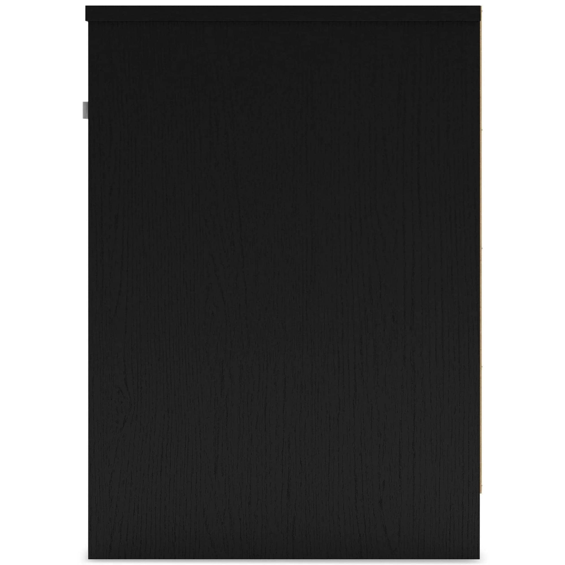 - VERSATILE STYLE: A cool black finish and metal pulls in a brushed nickel tone add to the streamlined look. It's the perfect perch for a lamp or record player