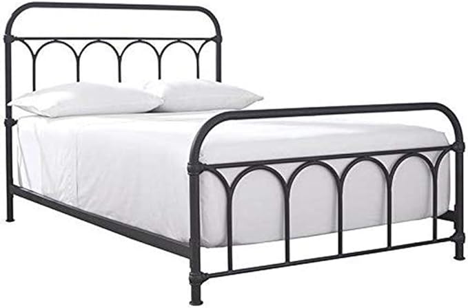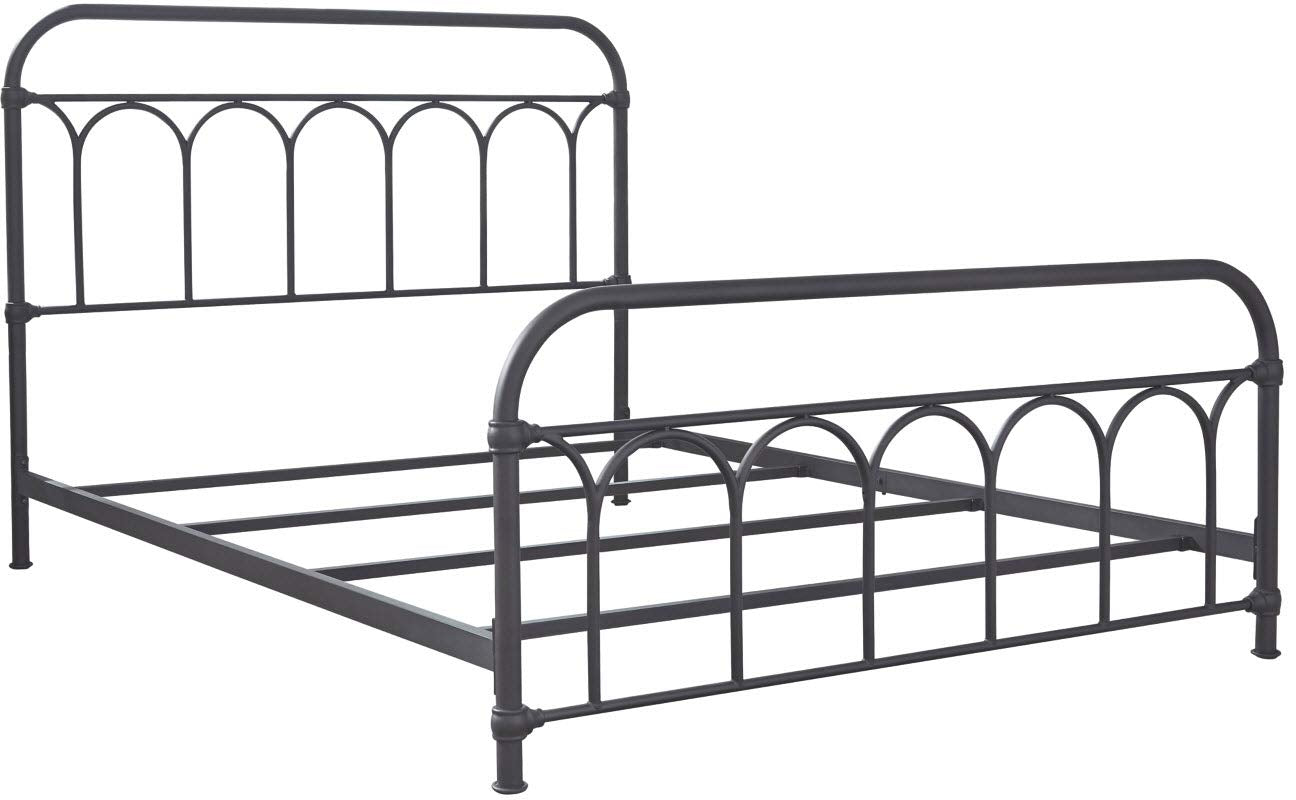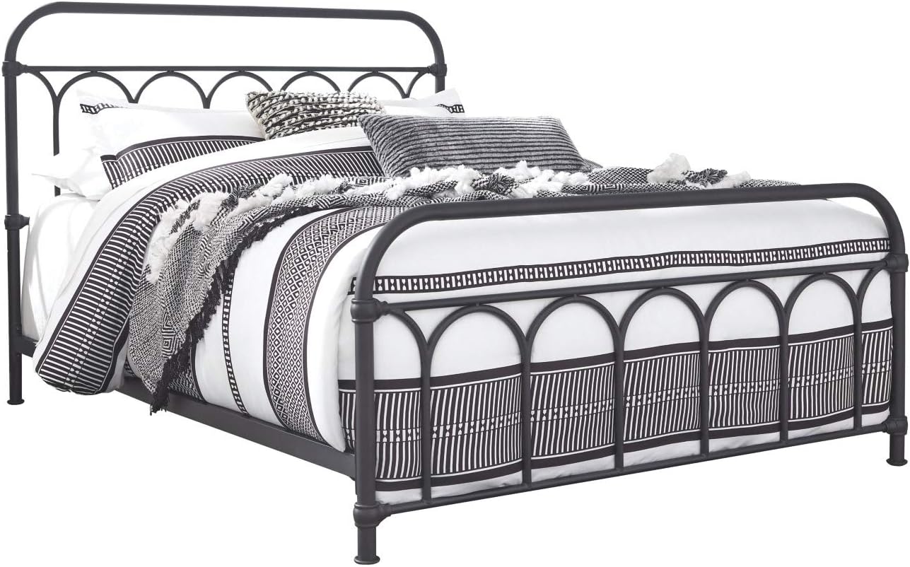 Nashburg Farmhouse Industrial Queen Metal Bed with Powdercoated Finish,