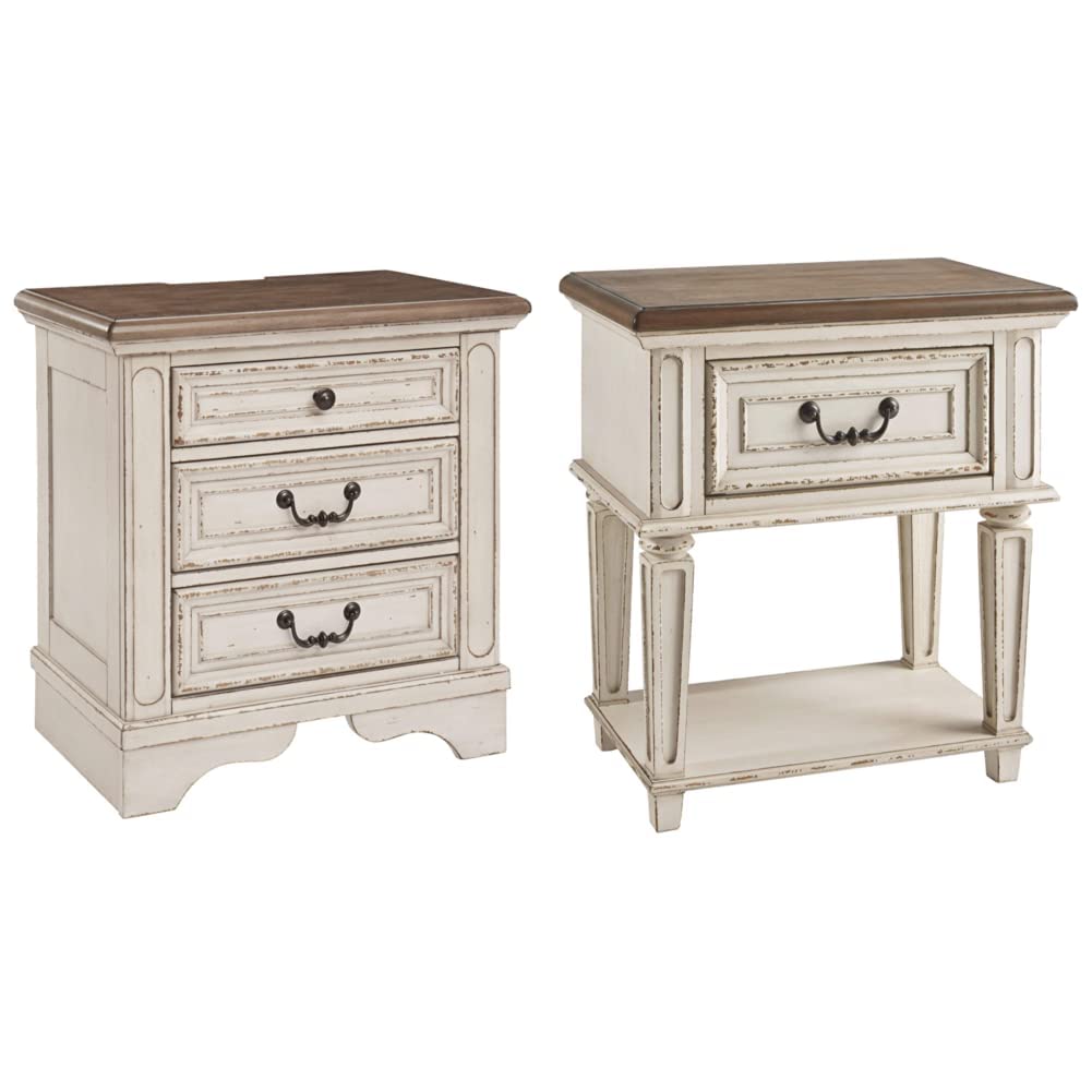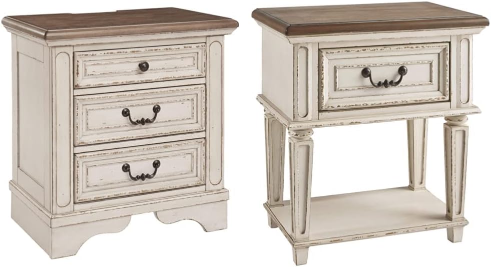 Realyn French Country 3 Drawer Nightstand, Chipped White & Realyn Traditional Cottage
