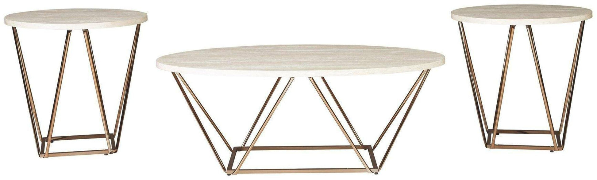 Tarica Modern 3 Piece Table Set, Includes Coffee & 2 End Tables, White & Gold