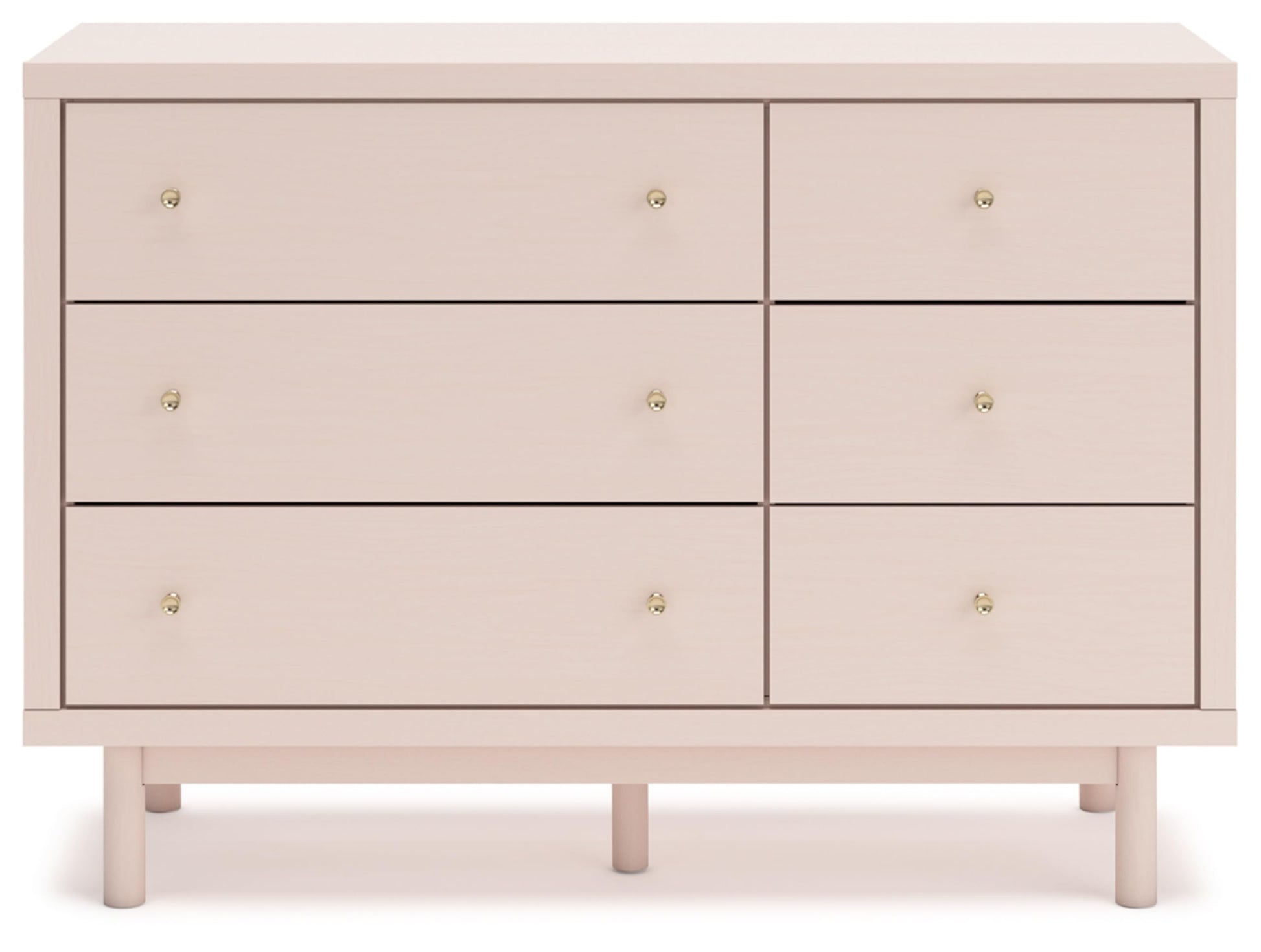 - 6-DRAWER DRESSER: Pretty in pink. This dresser keeps the spirit of a modern aesthetic while suiting your young one's needs. The blush finish brings a playful, charming vibe to organizing clothes