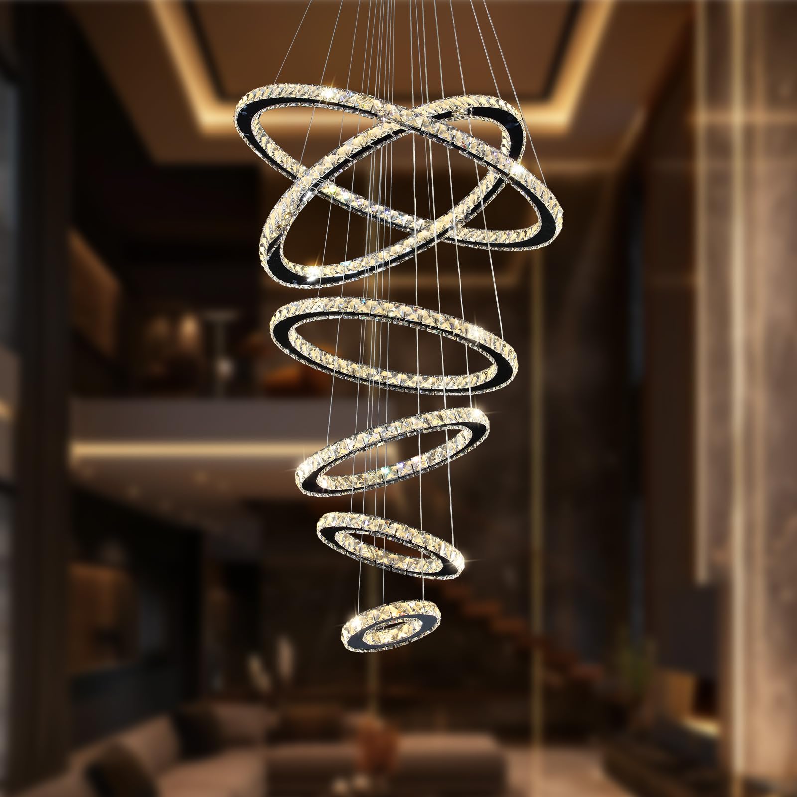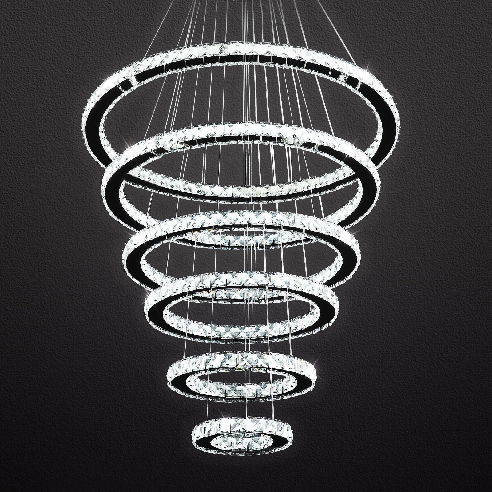 Modern Crystal Chandelier Lighting, 6 Ring Chandelier LED Ceiling Lights Fixtures