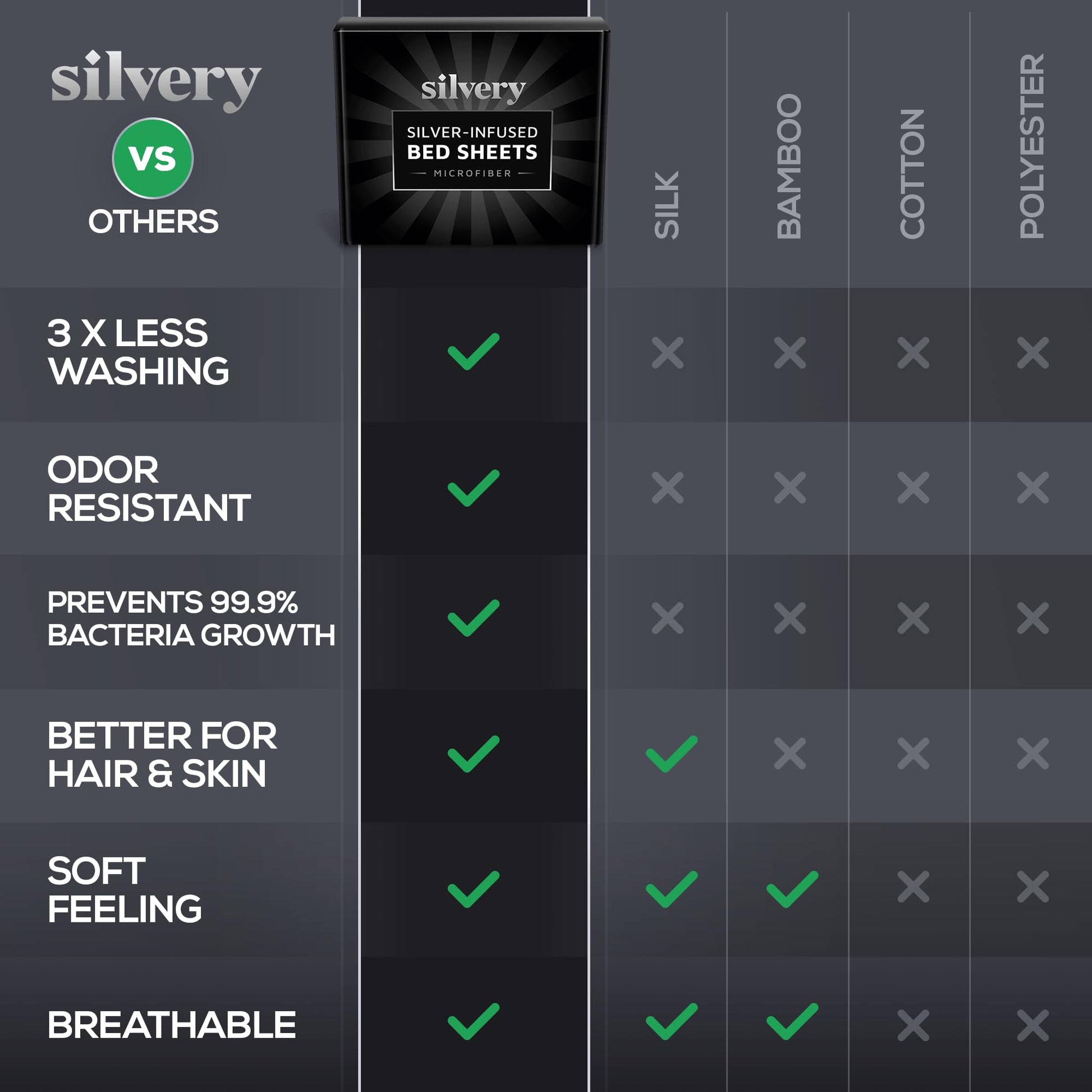 - Now there’s no need to sacrifice comfort for cleanliness with Silvery bed sheets with Silvery Technology. These hypoallergenic, temperature-regulating sheets are among the softest bedding you’ll ever own, designed to maintain a cleaner sleeping environment. The result is a comfortable, worry-free, and rejuvenating sleep.