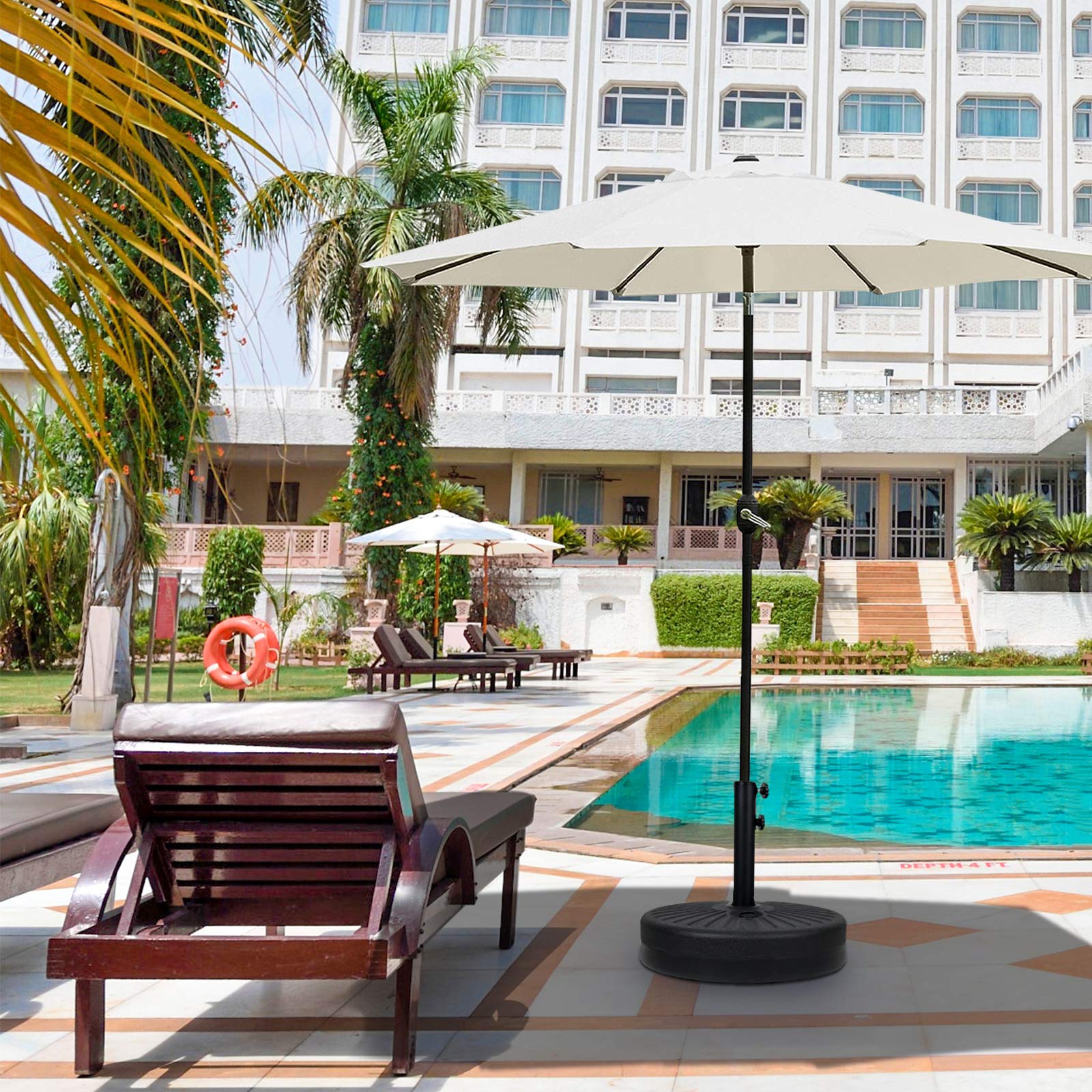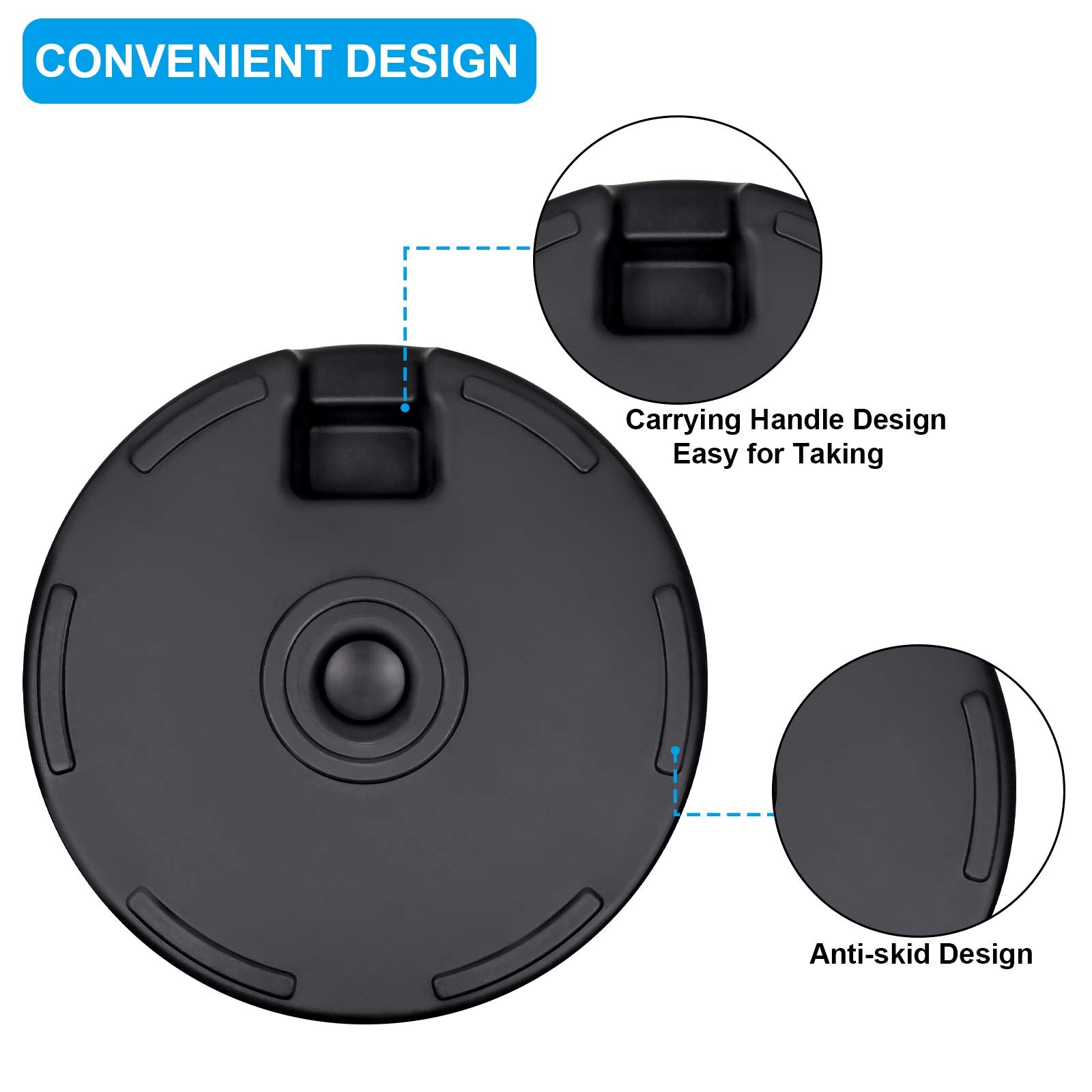 - Water or sand filling: The base can be filled with water or sand, has a maximum weight of 50 pounds, and can be easily transported when emptied. Base does not include water and sand. Do not fill with water at or below 32°F to prevent freezing and cracking
