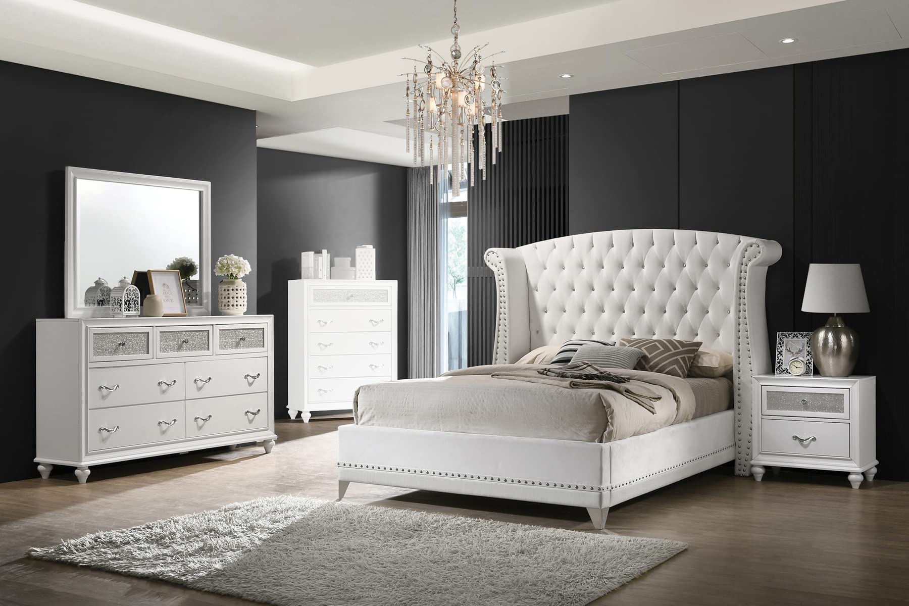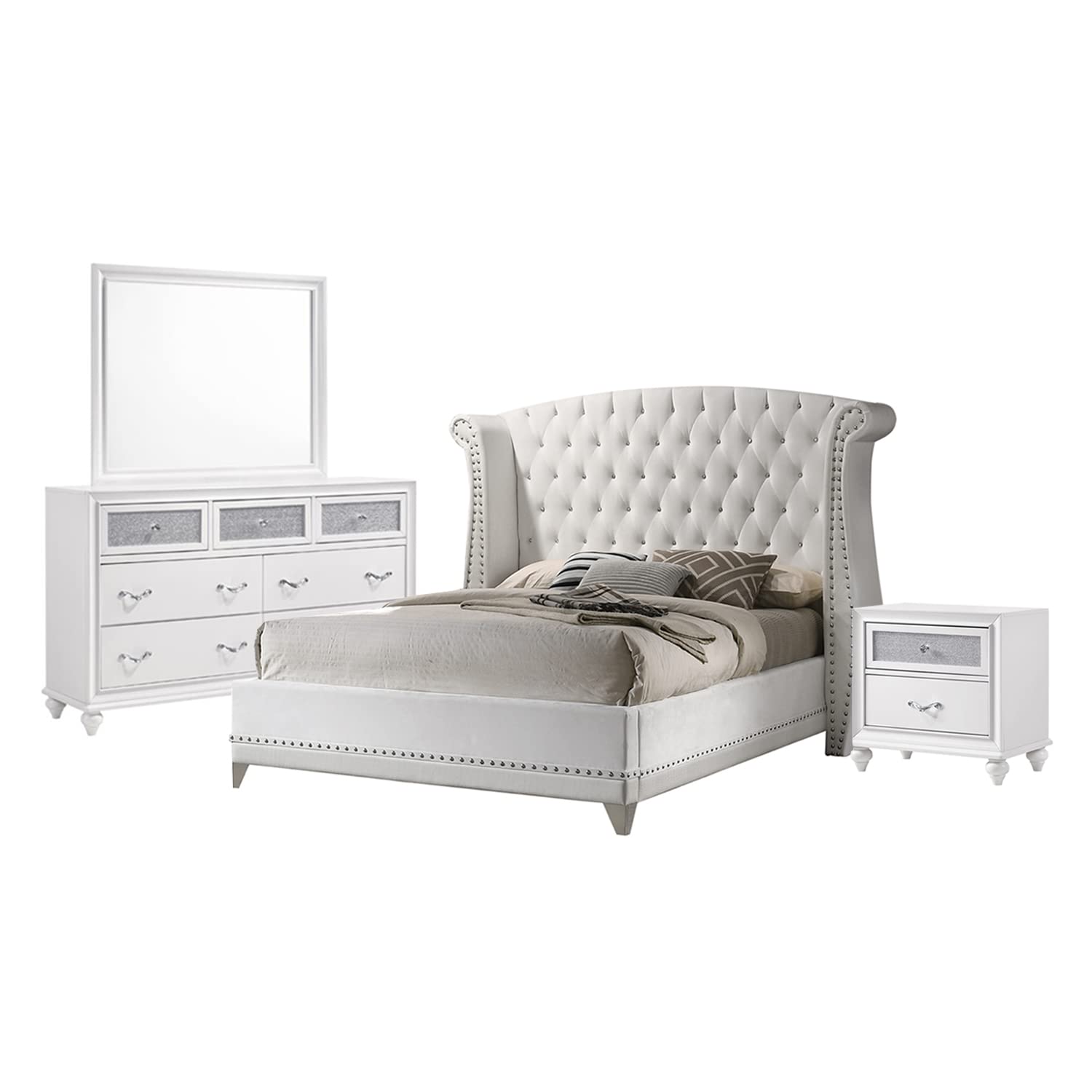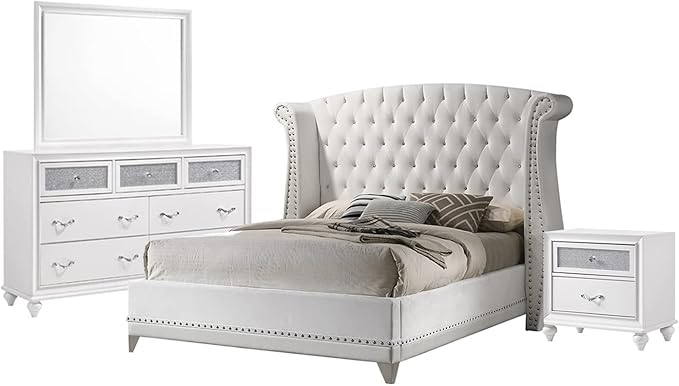 4 Piece PU Eastern King Bedroom Set, Chrome, White