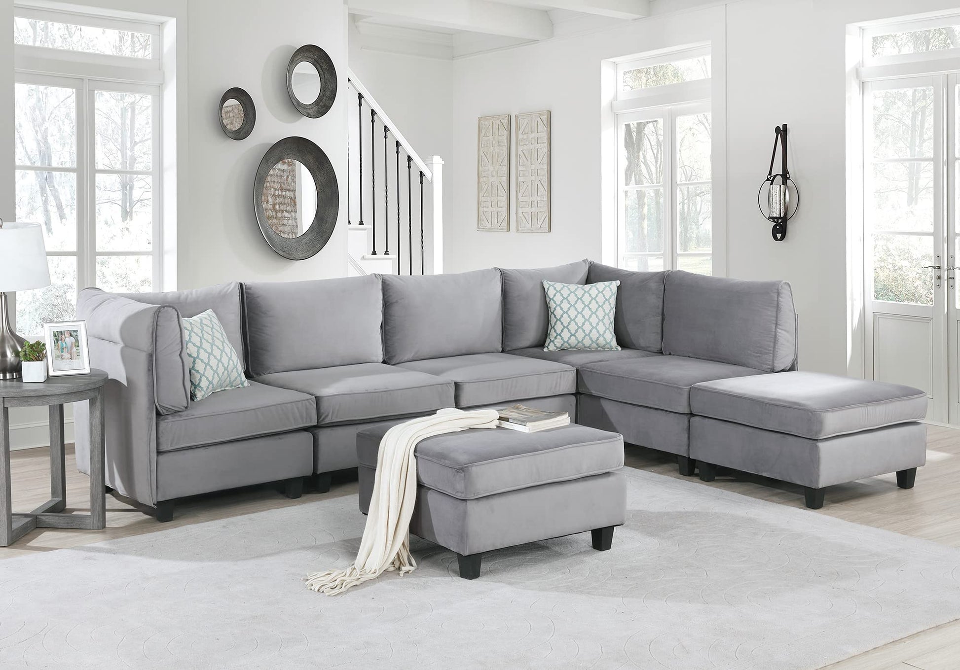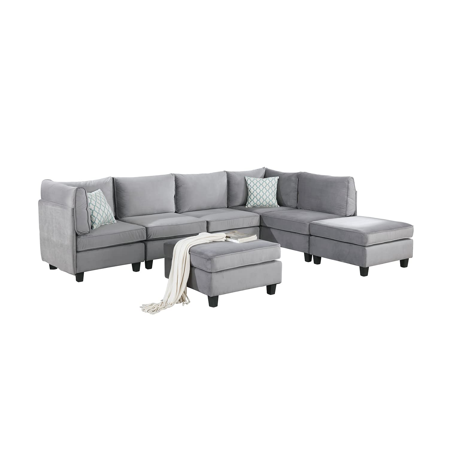 7 Piece Velvet Modular Sectional Sofa with Ottoman, Grey