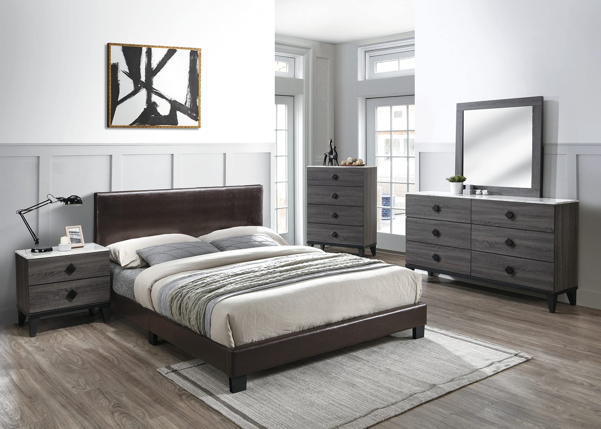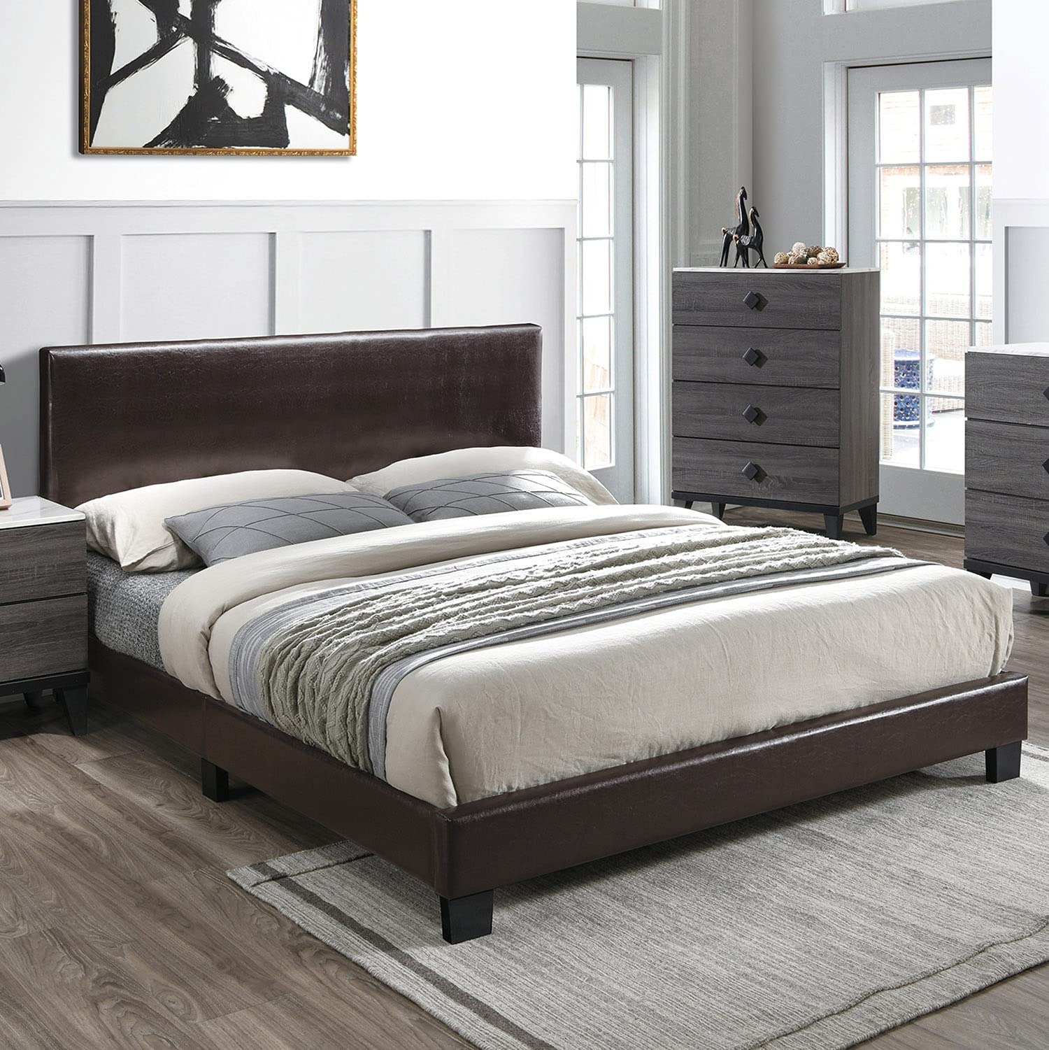 Faux Leather Upholstered Full Bed,Brown