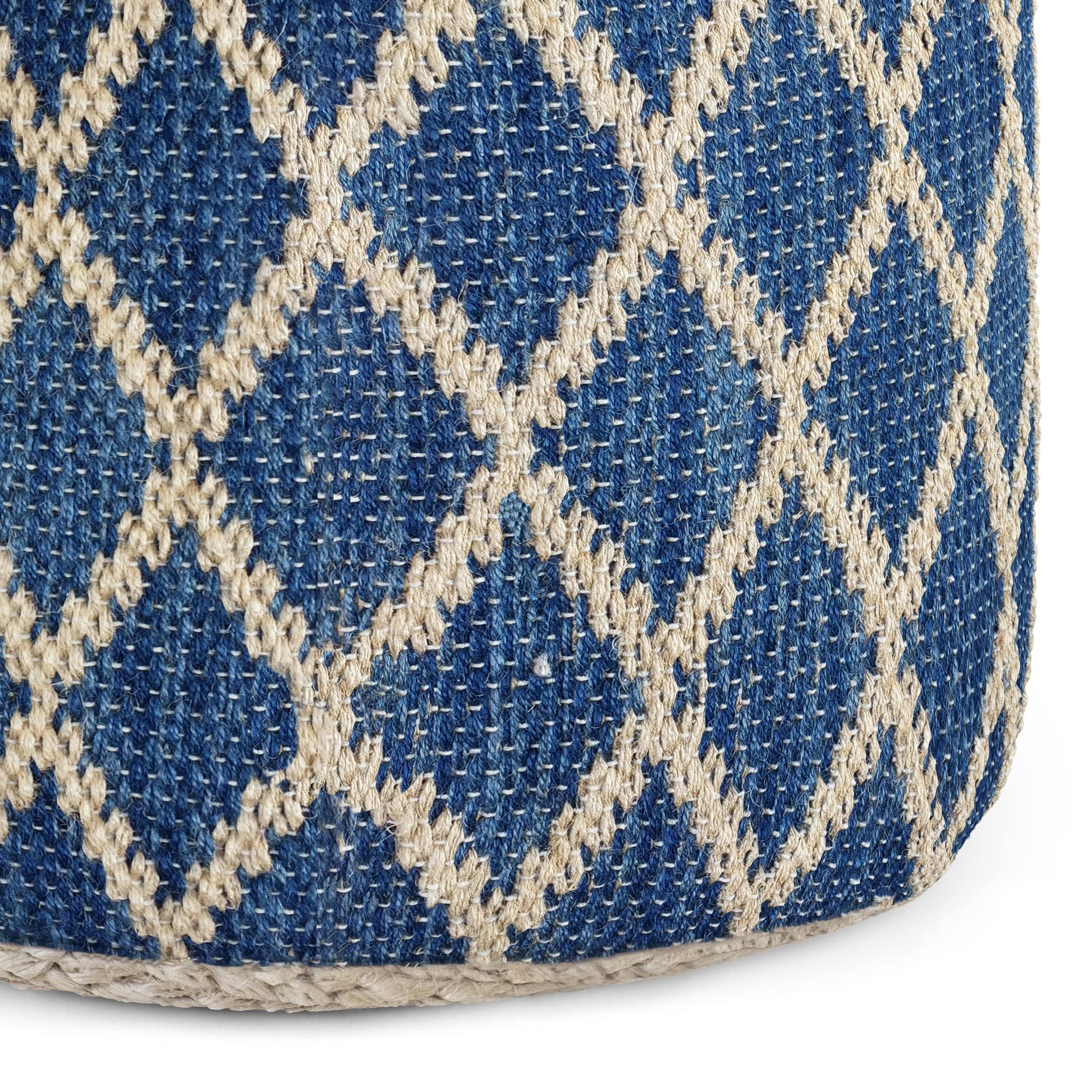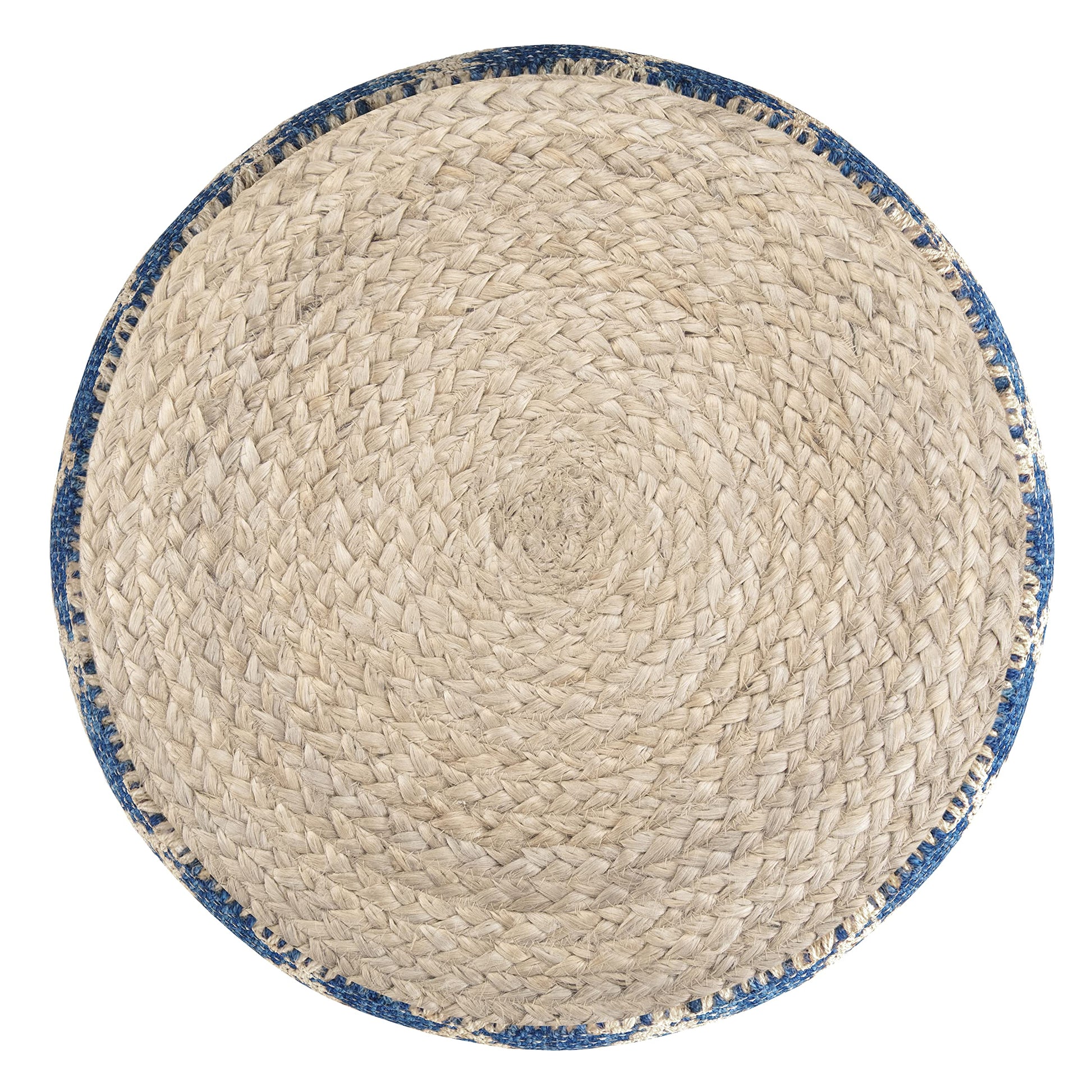 Edgeley Boho Round Pouf in Classic Blue, Natural Woven Braided Jute for the Living Room, Bedroom and Kids Room