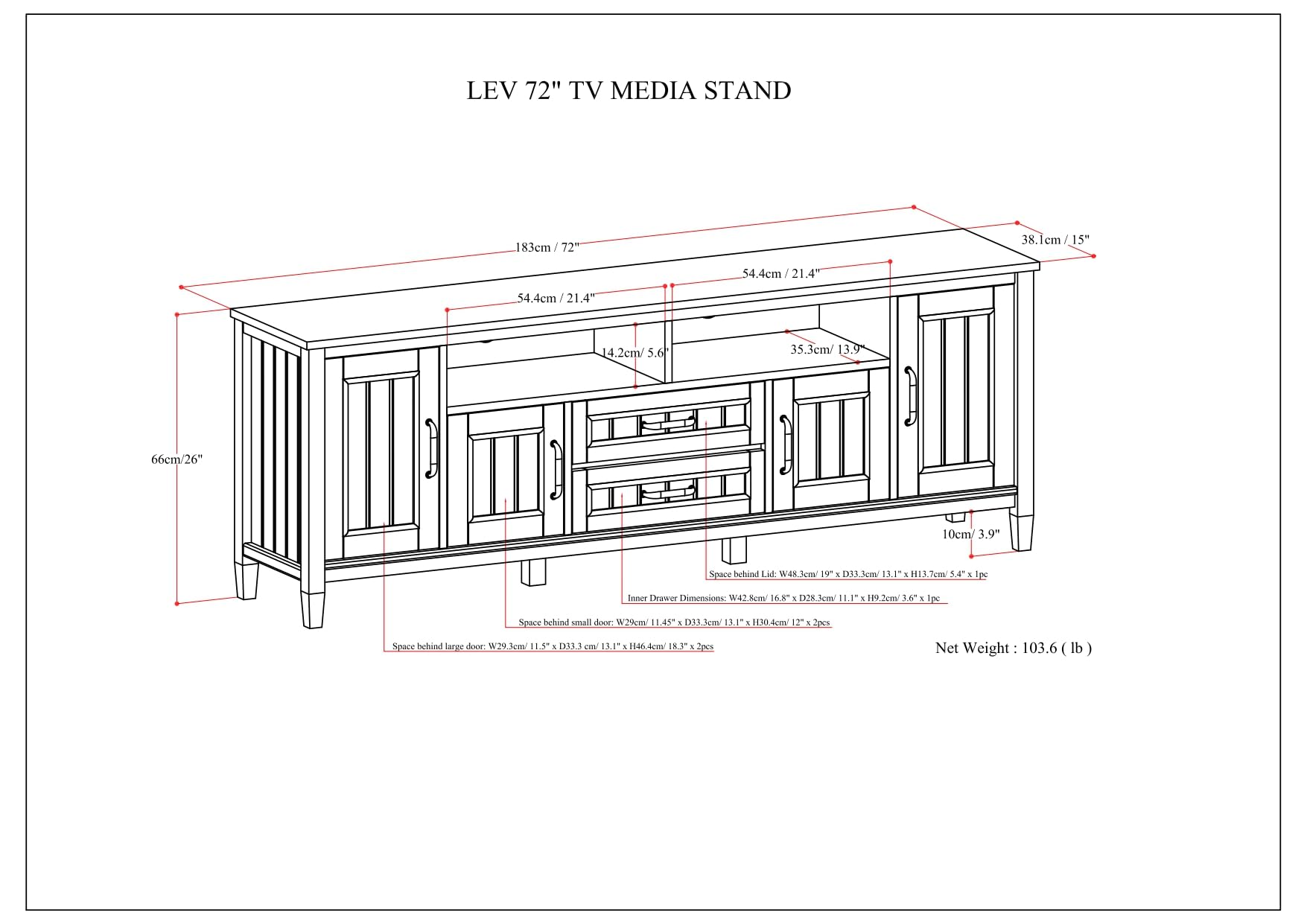 Lev SOLID WOOD 72 Inch Wide Contemporary TV Media Stand in Smoky Brown