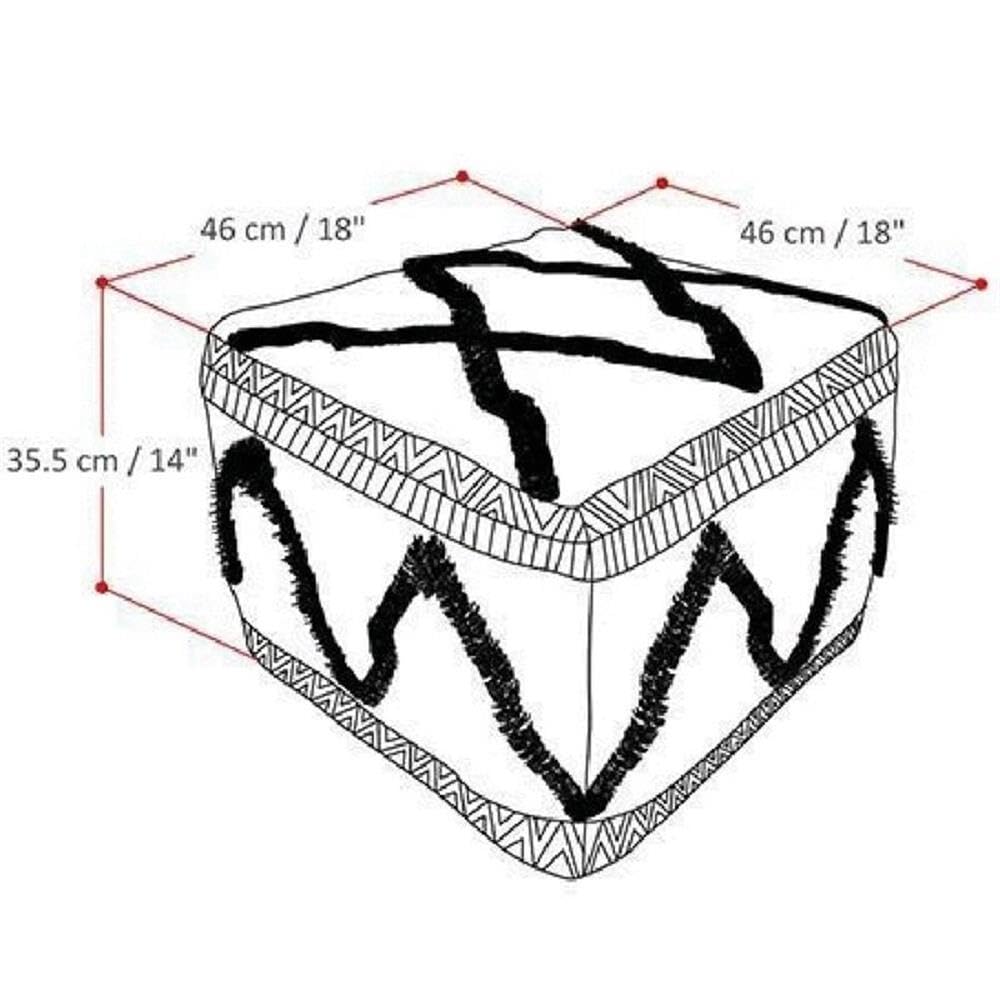 Sweeney Boho Square Pouf in Grey, Natural Handloom Woven Pattern for the Living Room
