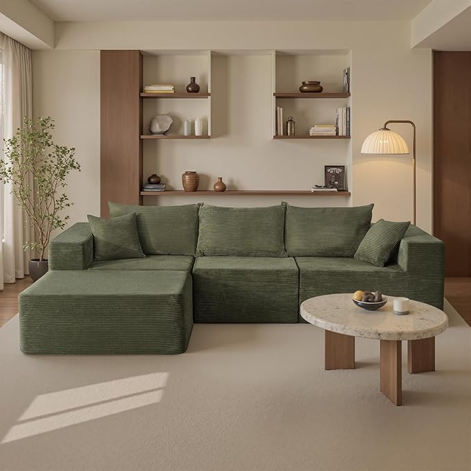 - Upholstered in luxurious corduroy, this sofa adds a warm, tactile feel and modern look to your space. Ideal for design-conscious individuals or families looking for a stylish yet low-maintenance seating option that complements both minimal and cozy interiors.