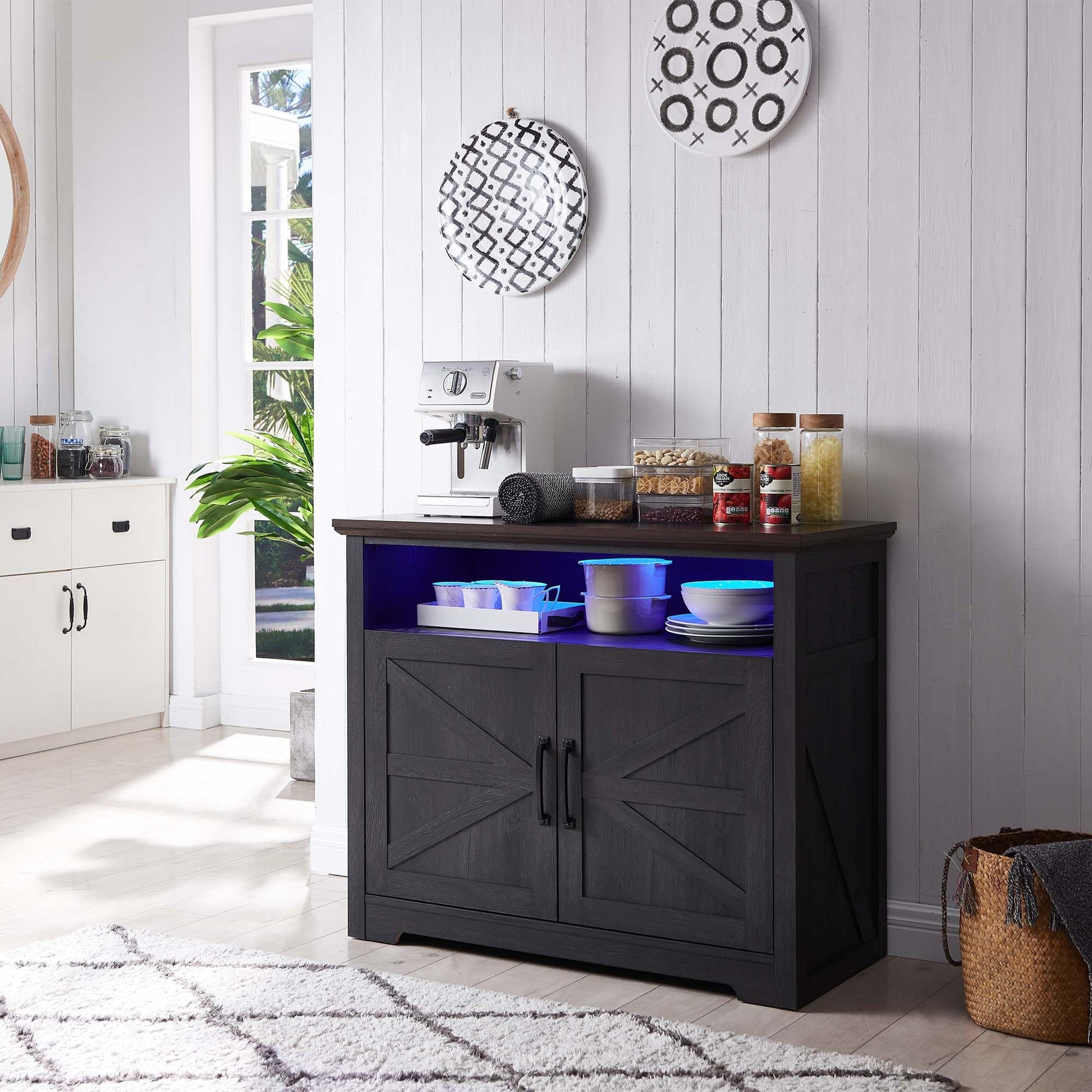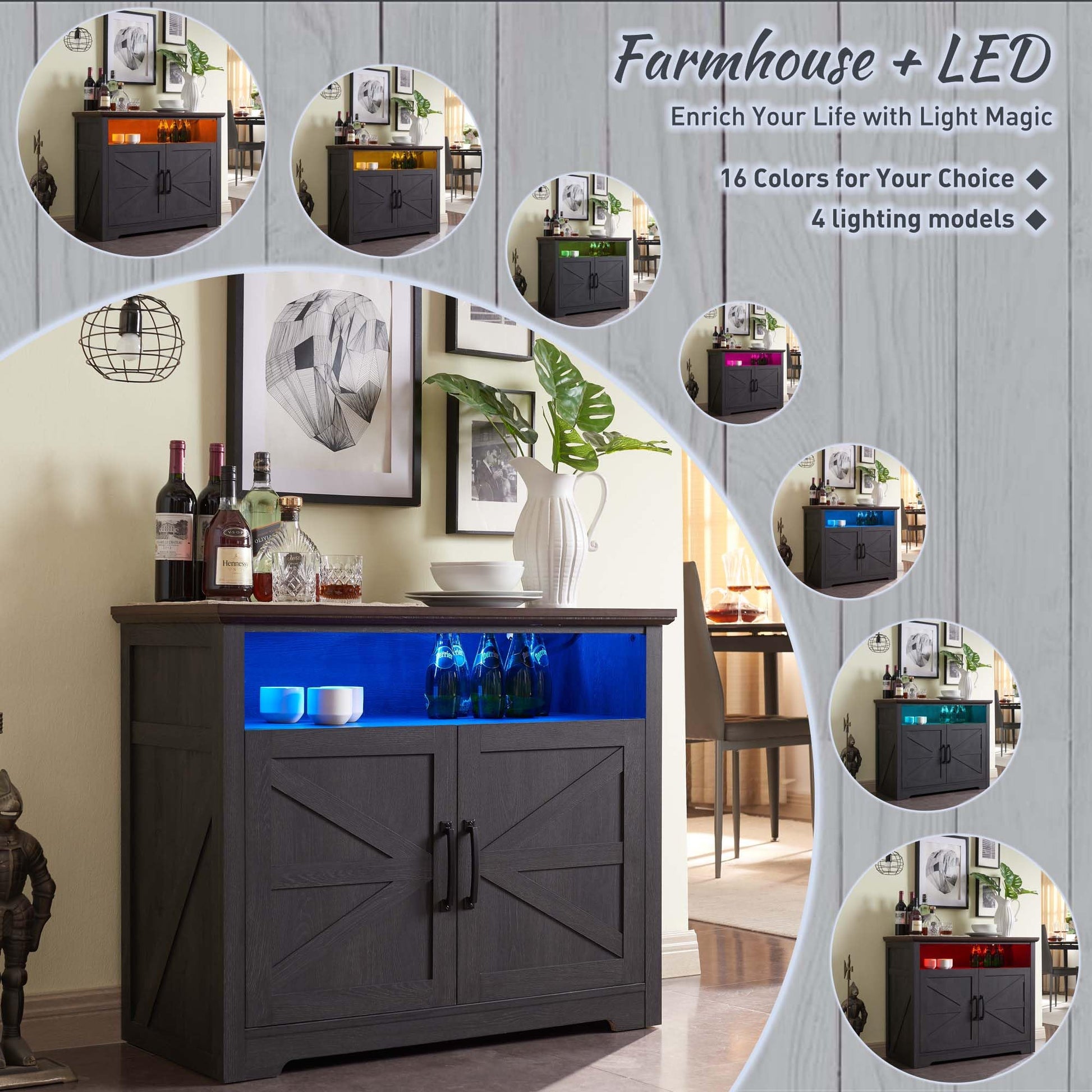 - Farmhouse & LED Combination: The Sideboard buffet cabinet stands out with its unique Farmhouse style and Technological LED lighting. With its rustic barn door design, it exudes a rural ambiance, while the energy-efficient LED lighting creates a warm and cozy dining atmosphere. Not only does it offer versatile storage solutions, but it also pays attention to detail and exquisite craftsmanship, allowing you to enjoy the fusion of modernity and countryside charm as well