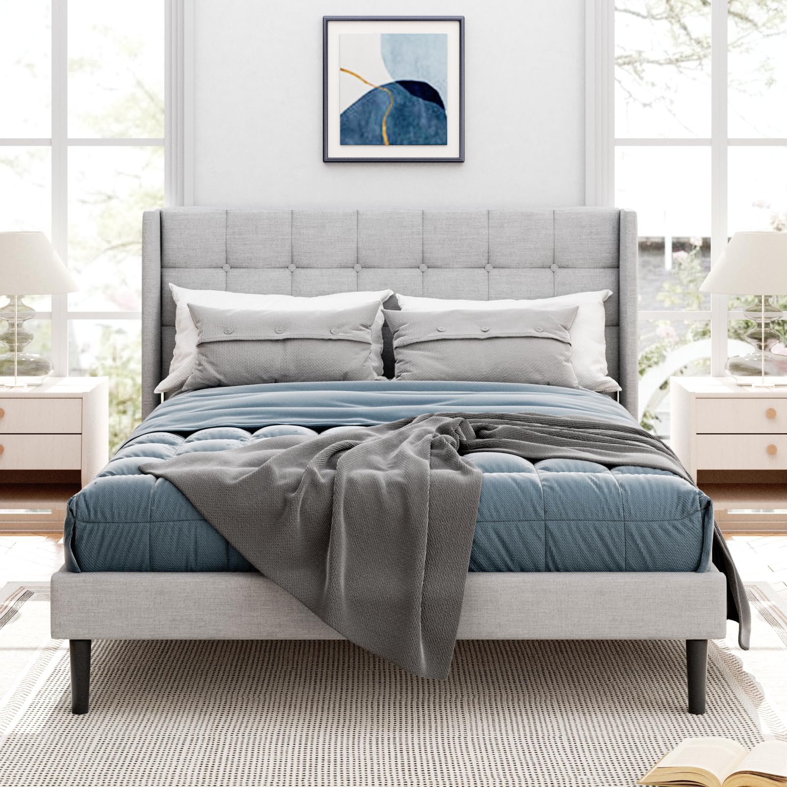 Queen Size Bed Frame with Headboard, Modern Upholstered Platform Bed Frames