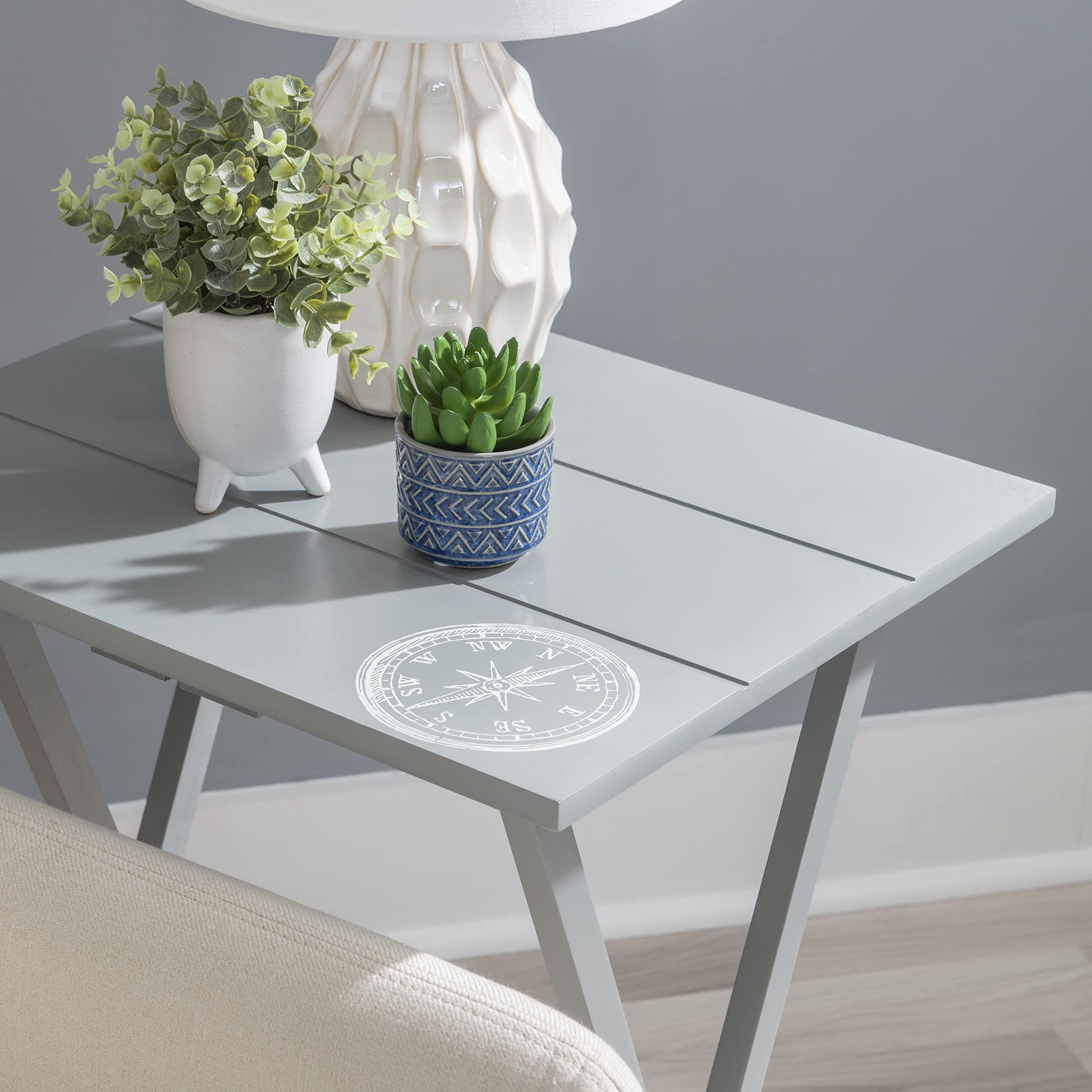 - Sleek Gray Finish: Features a stylish planked gray surface with a subtle compass design to elevate your interior aesthetic.
