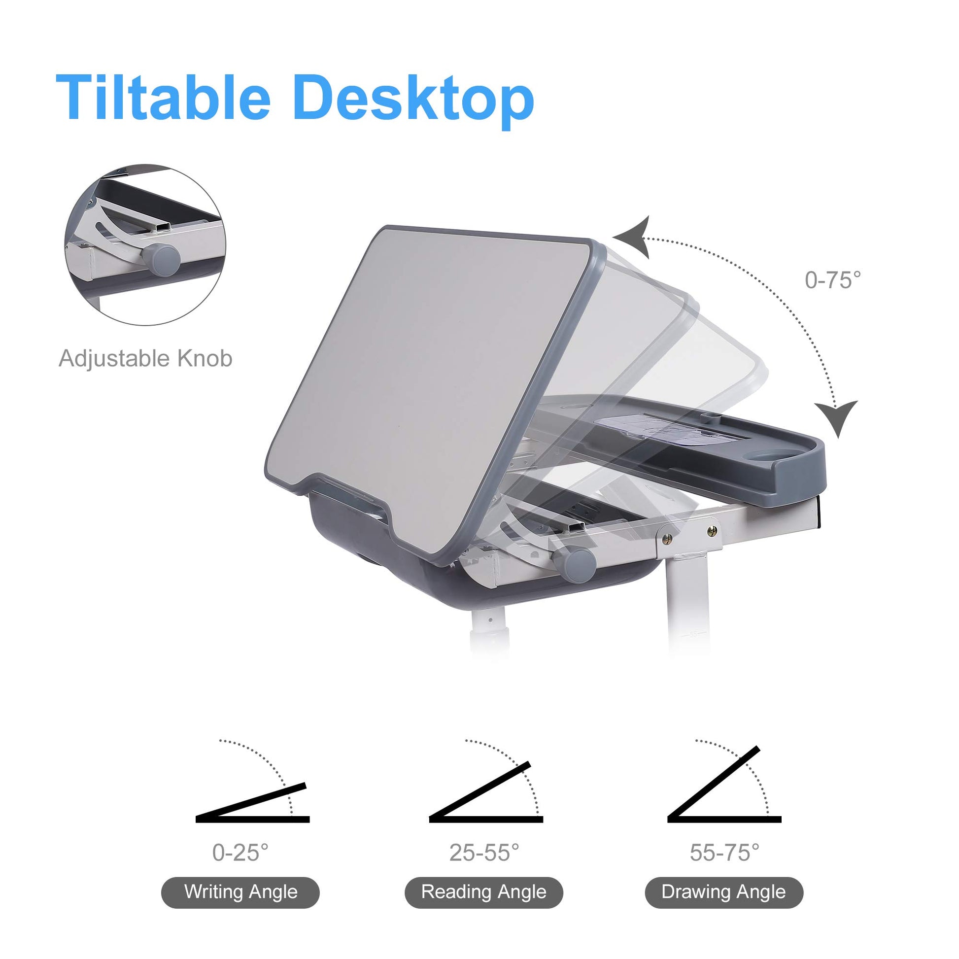 - ☘️【Tilted Desktop】The 27.5”x19.6”desktop can be tilted from 0-75° ,This satisfying different needs of desktop angle for writing, doing homework, reading and drawing. Prevent hunchback and promotes healthy posture to children and protect their eyesight.
