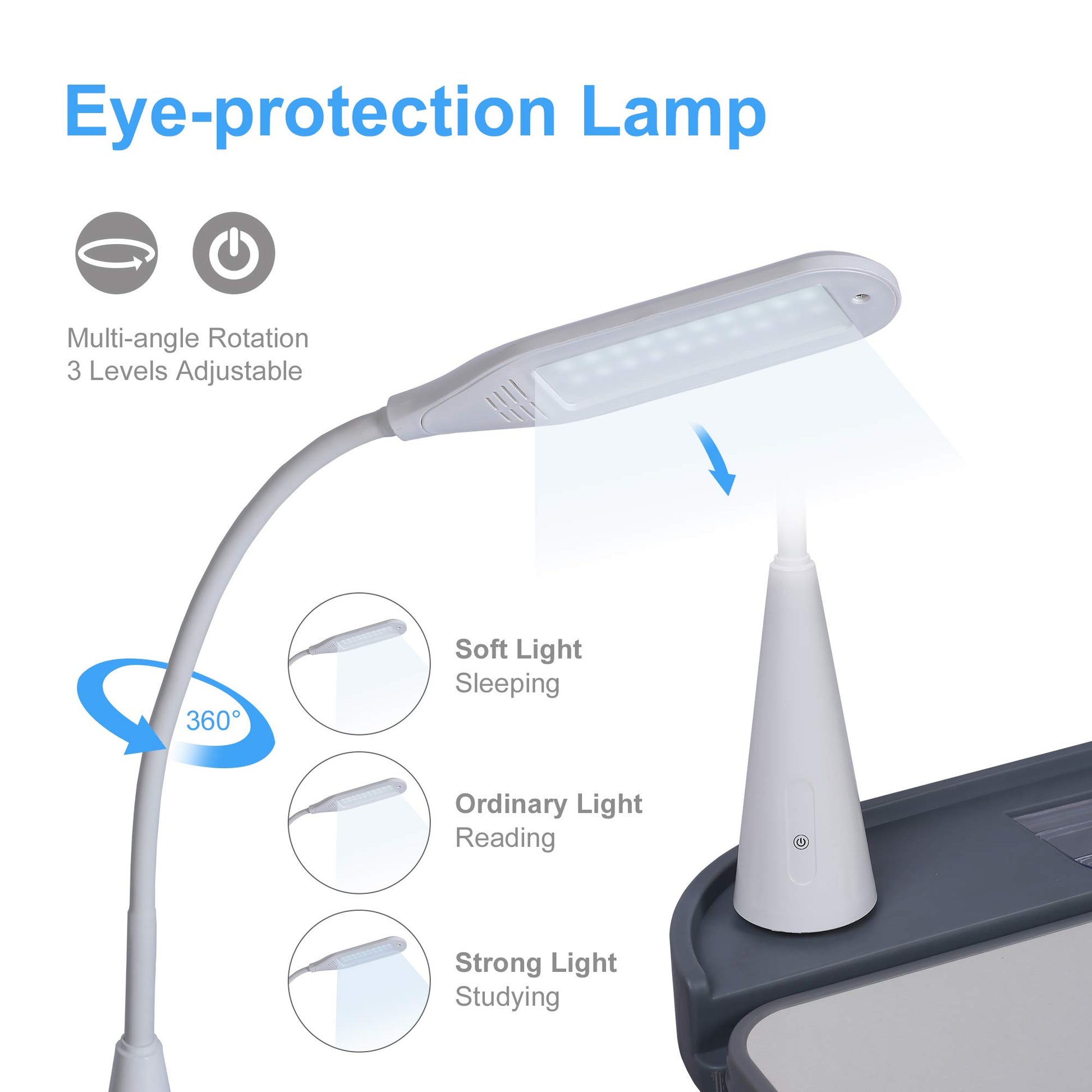- ☘️【LED Lamp & Book Stand】LED lamp is included with 3 levels of brightness, According to the needs of children, they can freely adjust the direction and brightness for learning or reading. The rotatable bookshelf is used to fix the books and keep a proper distance to protect children's eyesight