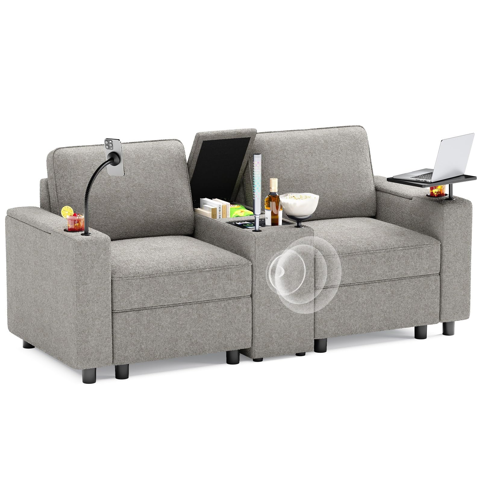SmartLuxe – Power Reclining Home Theater Sofa with Bluetooth, Storage & Cup Holders