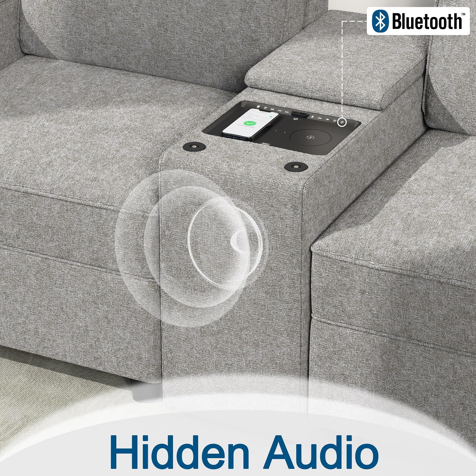 - Features: Power Recline, Cup Holders, USB & Wireless Charging, Bluetooth Speakers, Hidden Storage